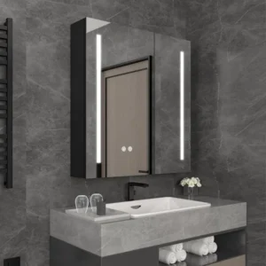 A modern-inspired mirror that combines the beauty of design with the convenience of storing the personal items you need every day in the bathroom. Available in a variety of colors, it fits in with different bathroom décor and features touch-switch control. You can adjust the brightness of the light from 10% to 100% by simply holding down the power button.