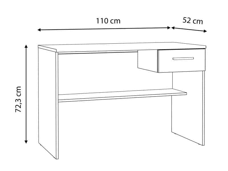 Features of a modern office slate with a drawer and a lower shelf made of natural wood