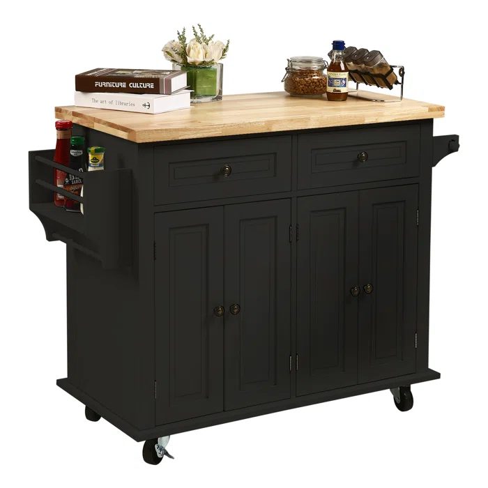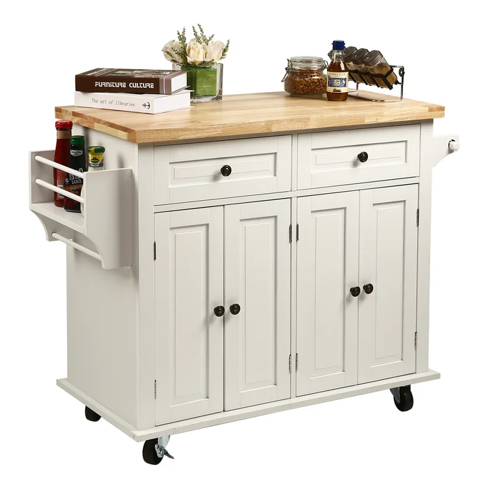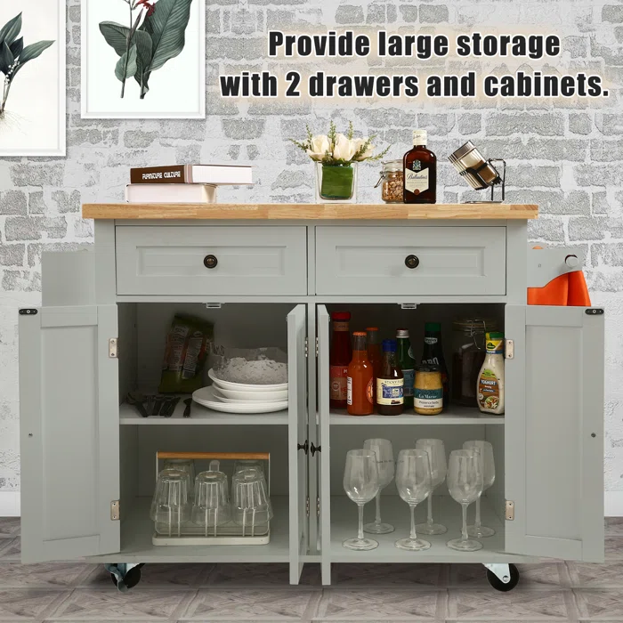 ستضاعف جزيرة المطبخ تلك مساحة التخزين داخل مطبحك ليصبح أكثر ترتيبا ، كما ستوفر لك مساحة تحضير متسعة وكل أدوات الطبخ في متناول يدك لأن لها رف للتوابل ورف للمناشف وضلفتان لتخزين الأطباق والآنية ودرجين متسعين. يسهل تحريكها من خلال العجلات في الأسفل.