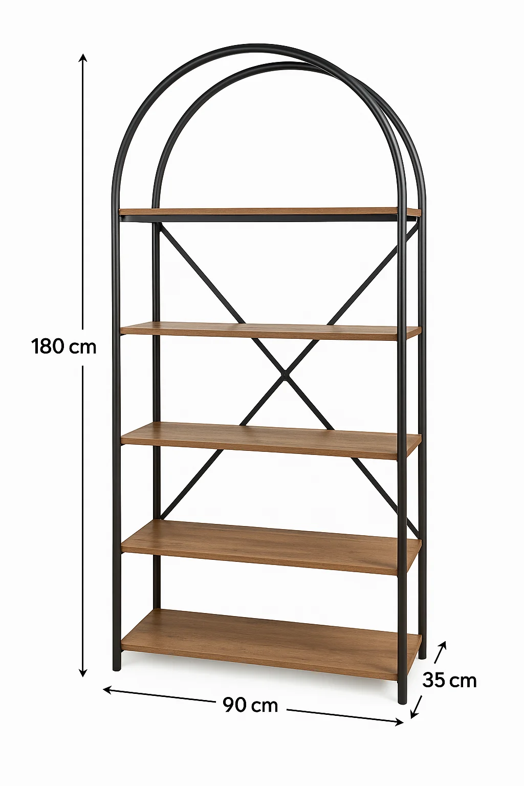 أرك مكتبة مودرن – خشب طبيعي × معدن أسود مكتبة مودرن أنيقة بتصميم نصف دائري تجمع بين الأناقة العملية والخامة الفاخرة، مصنوعة من خشب طبيعي متين مع إطار معدني أسود يمنحها ثبات وأناقة تناسب جميع المساحات.