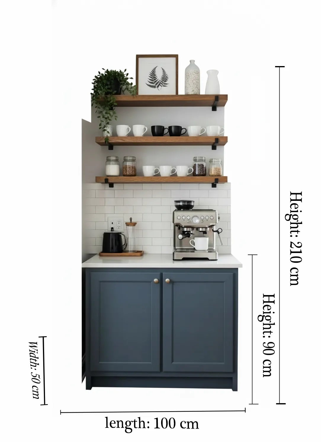 يأتي أزورا بخزانة سفلية مغلقة تساعدك على تنظيم أدوات القهوة والإكسسوارات بعيدًا عن الفوضى، بينما توفر الأرفف العلوية المفتوحة مساحة مثالية لعرض الأكواب والبرطمانات والديكورات. كما يقدم سطحًا عمليًا مخصصًا لوضع ماكينة الإسبريسو وتحضير مشروباتك اليومية بكل راحة.