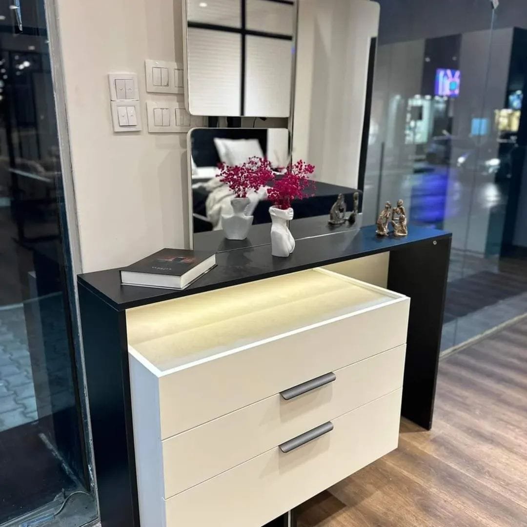 تتميز الغرفة بتدرج اللونين الأبيض والأسود لإطلالة عصرية راقية، مع خامات عالية الجودة تضمن المتانة والاستخدام الطويل.