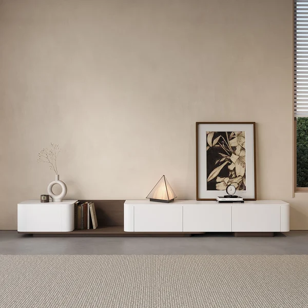 استمتع بالتصميم الفريد والمتطور مع خزانة التلفزيون القابلة للتمدد التي تضيف لمسة من الأناقة والعملية إلى غرفة المعيشة أو أي غرفة في منزلك. مع تصميم مبتكر يسمح بتعديل الخزانة جانبيًا، تضمن لك هذه الخزانة توفير مساحة عرض وتخزين مرنة تتناسب مع احتياجاتك. سواء كنت ترغب في إضافة مساحة عرض إضافية أو تخزين مرتب لأجهزتك الإلكترونية، توفر لك هذه الخزانة التنظيم المثالي مع الحفاظ على جمال الديكور الداخلي.