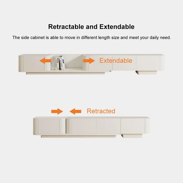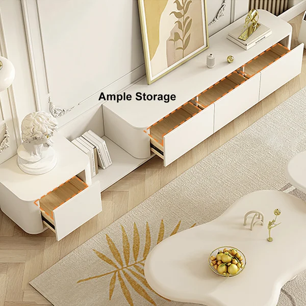 كيف يمكن تعديل ترابيزة الشاشة لتناسب المساحة؟ التصميم القابل للسحب والتوسع يمنحك حرية تعديل حجم الخزانة بسهولة لتناسب المساحات الصغيرة أو الكبيرة.