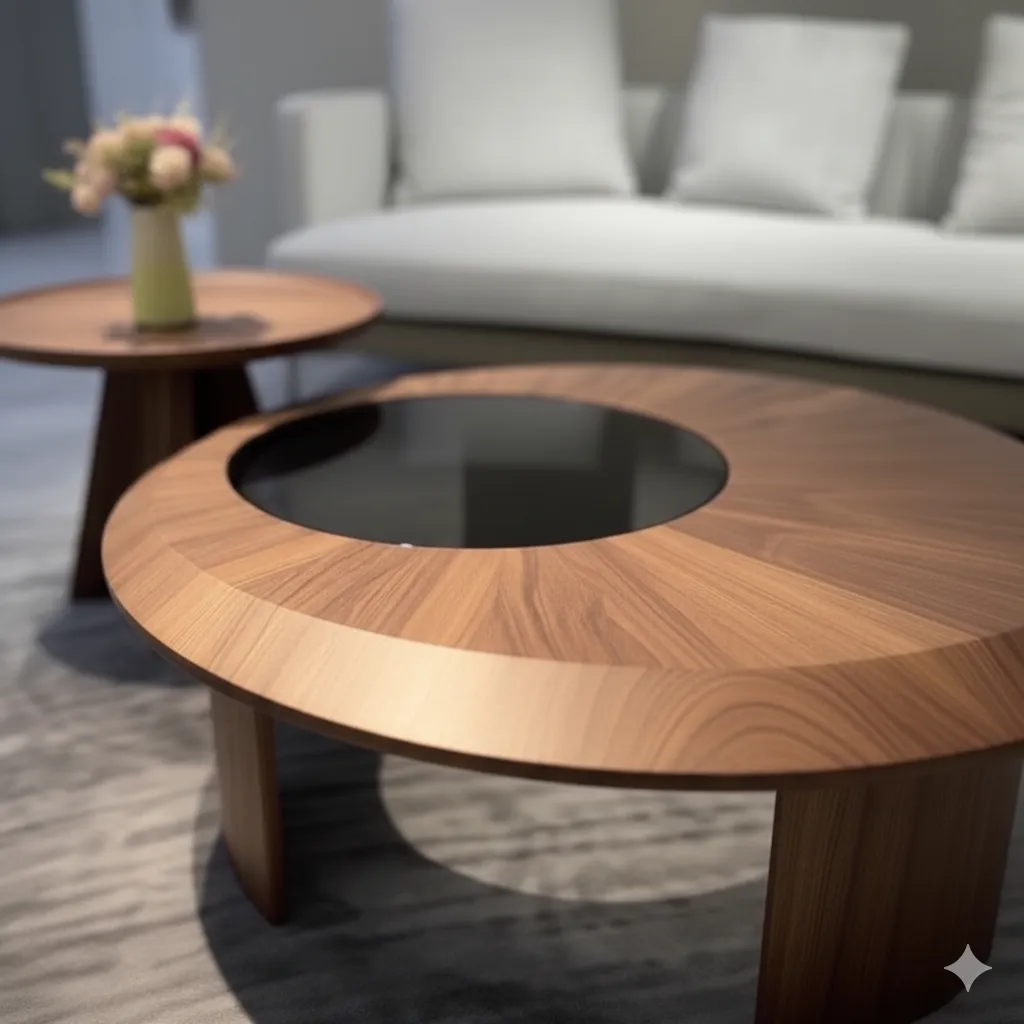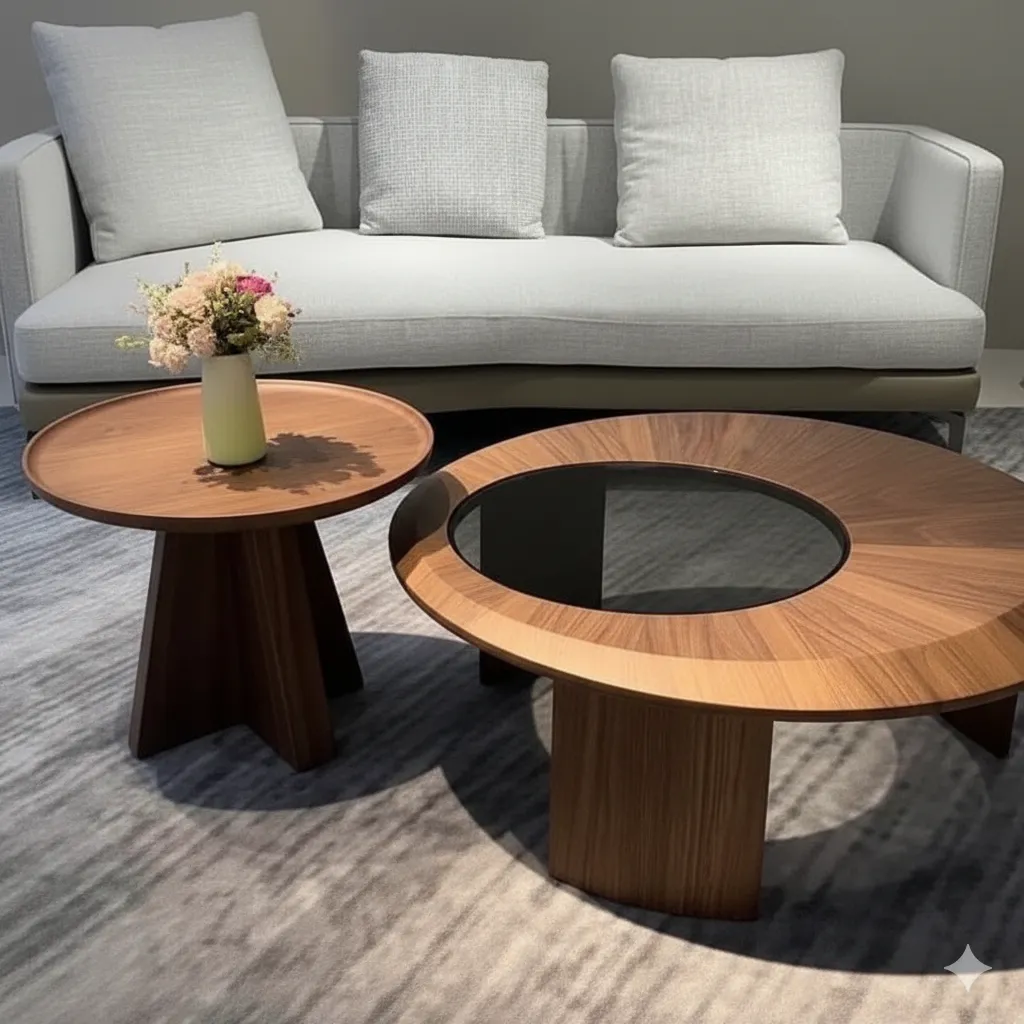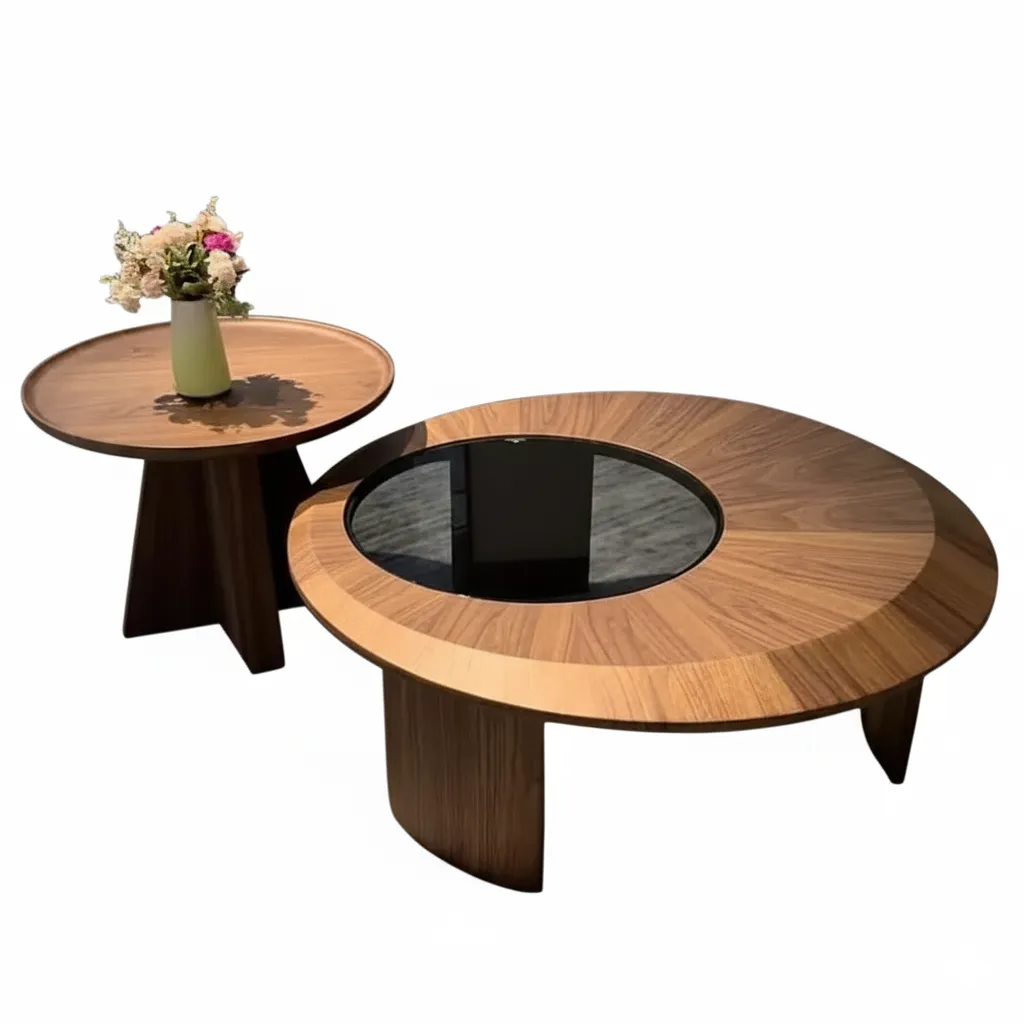ألتيرو طقم طاولات قهوة أنيق بتصميم دائري يجمع بين البساطة العصرية والفخامة الهادئة، ليكون قطعة أساسية في غرف المعيشة المودرن. يتميز بتصميم دائري متوازن يوفّر سهولة الحركة وانسيابية في الفراغ، مع دمج أنيق بين الخشب الطبيعي والسطح الزجاجي الأسود.