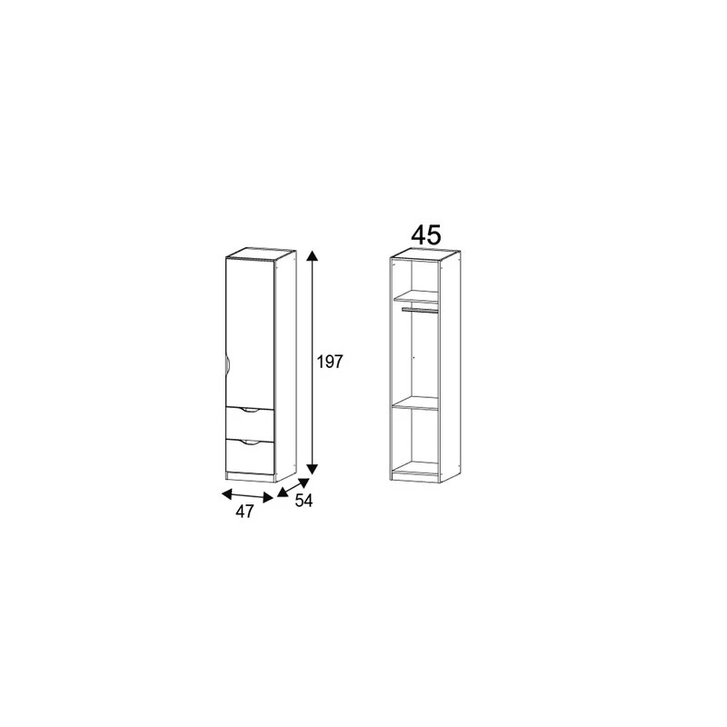 - تصميم كلاسيكي ومريح: خزانة ألفارا 1 باب تتميز بتصميم بسيط وأنيق يضفي لمسة من الفخامة على أي غرفة، مع أبواب مفصلية تجعل استخدامها أكثر راحة.