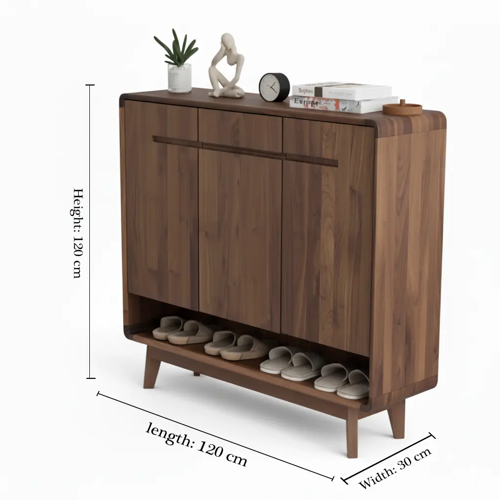 تصميمها العصري يتضمن مرآة طويلة بتفاصيل معدنية سوداء وإطار أنيق يخفي خلفه 4 رفوف تخزين واسعة لحفظ الأحذية والإكسسوارات بشكل أنيق ومنظم.
