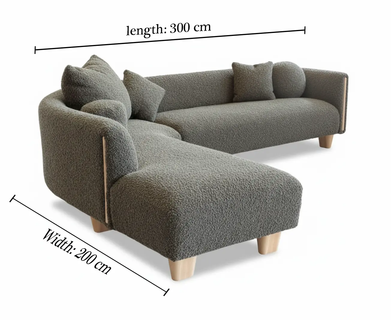 أليونا ركنة ليفينج مودرن بتصميم تركي أنيق ولمسة فخامة تضيف جمال وراحة لأي مساحة.قماش ناعم بلون رمادي مائل للأخضر مع أرجل خشبية طبيعية تضيف دفء للمكان.الأبعاد: الطول 300 سم × العرض 200 سم