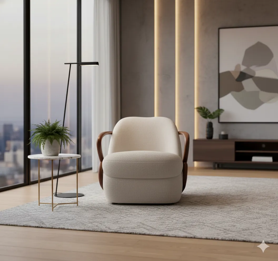 مناسب لغرف المعيشة، الزوايا الهادئة، غرف النوم، اللوبيات الفندقية، والمساحات الراقية التي تبحث عن قطعة تجمع بين الراحة والشكل الأيقوني الفاخر.