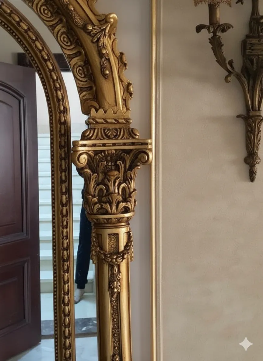 يأتي بتاج علوي منحوت يدويًا، وأعمدة كلاسيكية مزخرفة بطريقة تعكس جمال الطراز الأوروبي القديم.