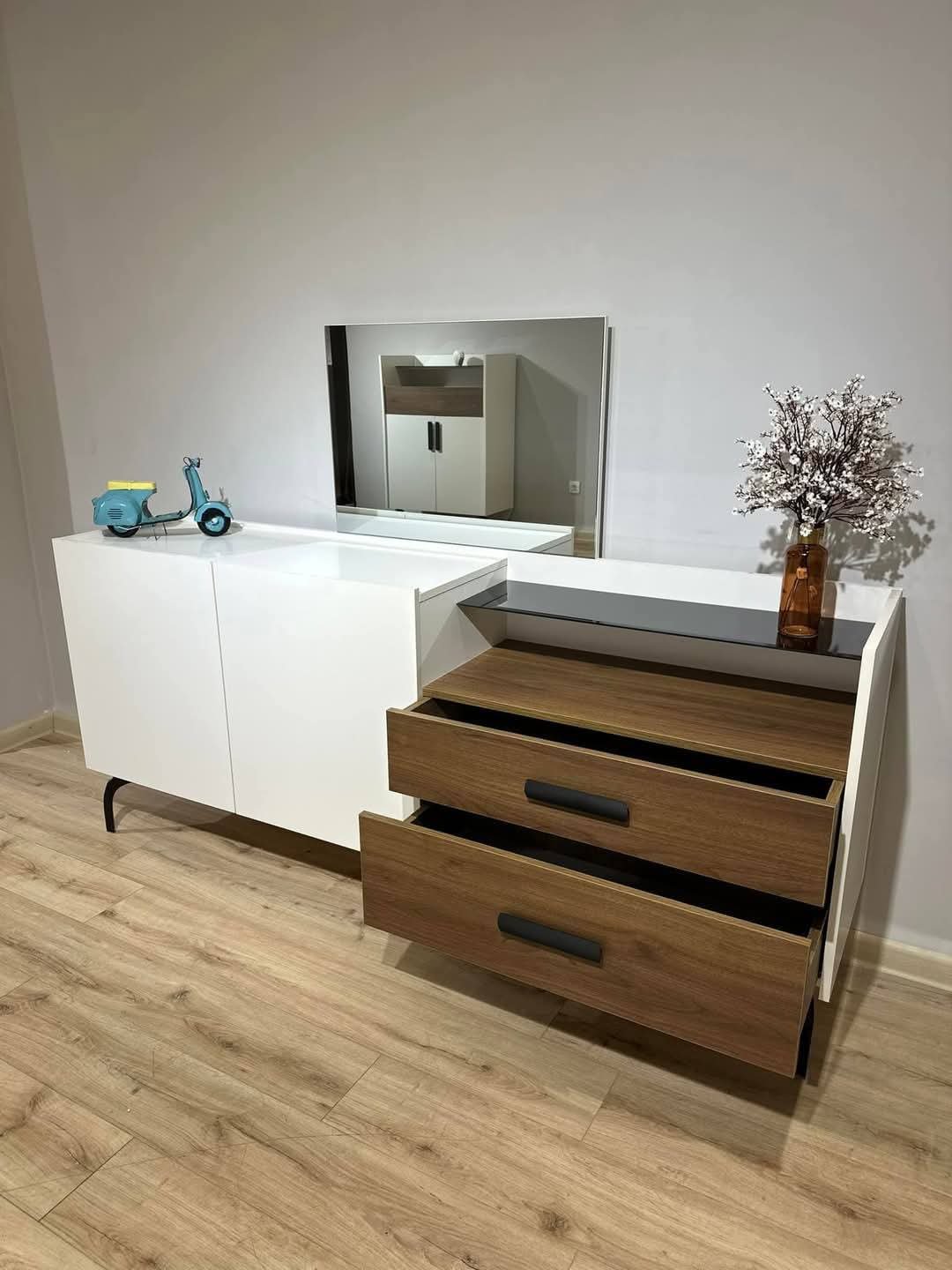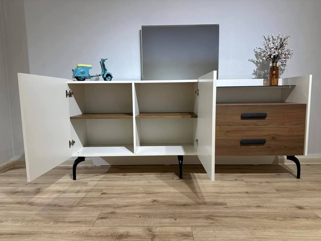 البوفيه مزود بأدراج وأبواب تخزين واسعة لتسهيل التنظيم.