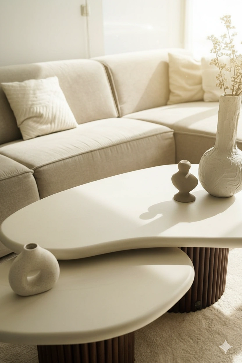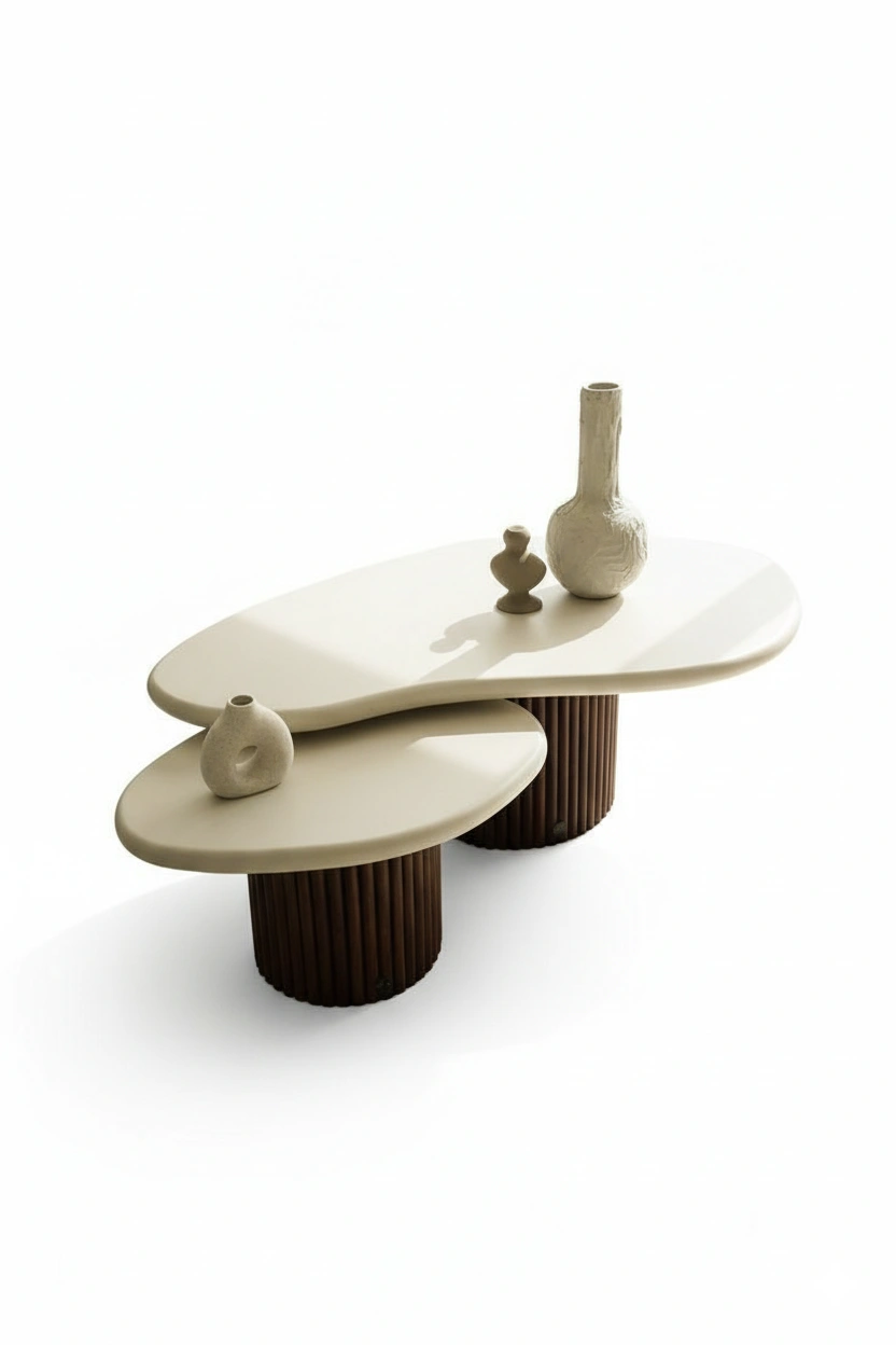 أورجانيكا طقم طاولات قهوة بتصميم حر مستوحى من الخطوط الطبيعية والتصميمات الحرة التي تضيف إحساسًا بالهدوء والانسجام داخل المساحة. يتميز بسطح ناعم بتصميم غير منتظم يعكس الطابع العضوي، مع قواعد قوية تضيف ثباتًا وأناقة في نفس الوقت.