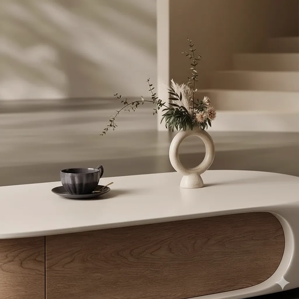 توفر مساحة استخدام عملية لوضع المشروبات، الكتب، والإكسسوارات، مع تصميم منخفض مريح يتناسب مع مختلف أنماط الجلوس.