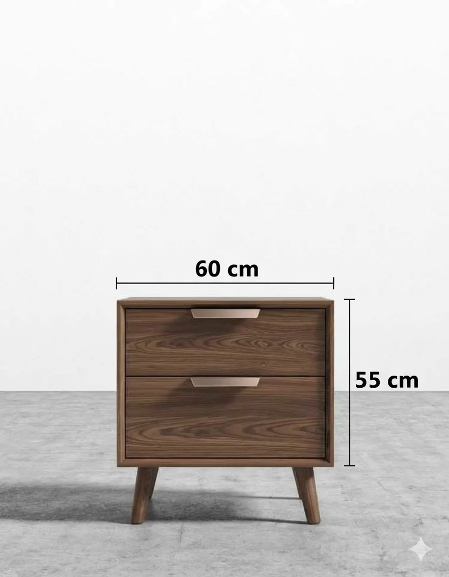 مصنوع من الخشب الطبيعي بجودة عالية ليضمن ثبات ومتانة، مع درجين بسعة تخزين مثالية لحفظ المتعلقات الشخصية.