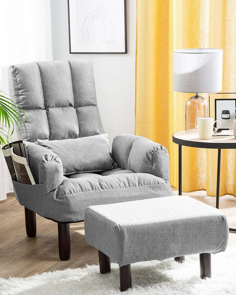 تتألف هذه المجموعة المريحة من كرسي بذراعين ومسند بتصميم أنيق، مما يجعلها إضافة رائعة إلى غرفة المعيشة. تتناغم مع أي ديكور سواء كان معاصرًا أو تقليديًا. يتميز الكرسي بإمكانية طي مسند الظهر وتعديله حسب الحاجة، مما يتيح لك استخدامه براحة تامة. يوفر المقعد المنجد الواسع المزخرف بالأزرار، مع الظهر المرتفع والمساند للأذرع، راحة استثنائية في الجلوس. كما أن الكرسي مصنوع من الخشب الطبيعي الذي يمنحه الثبات والمتانة. يتوفر الكرسي بعدة ألوان لتناسب ذوقك الشخصي وديكور منزلك