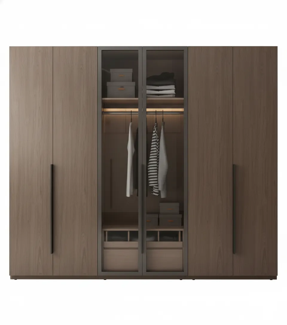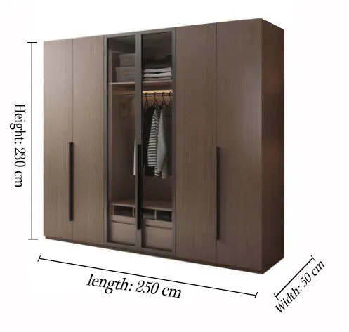 توفر الخزانة مساحة مثالية لتعليق الملابس، ورفوف متدرجة للتخزين، إضافة إلى أدراج داخلية تساعد على ترتيب القطع الصغيرة والاحتياجات اليومية بكل سهولة.