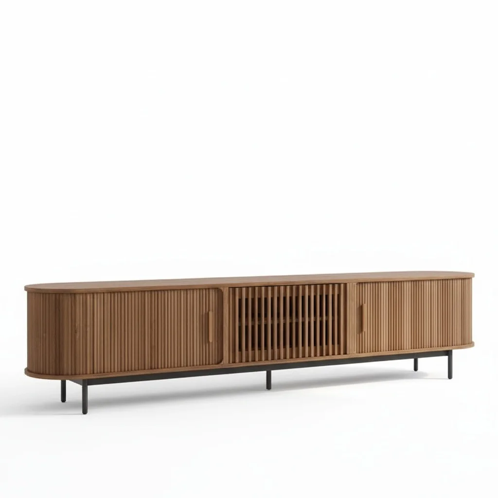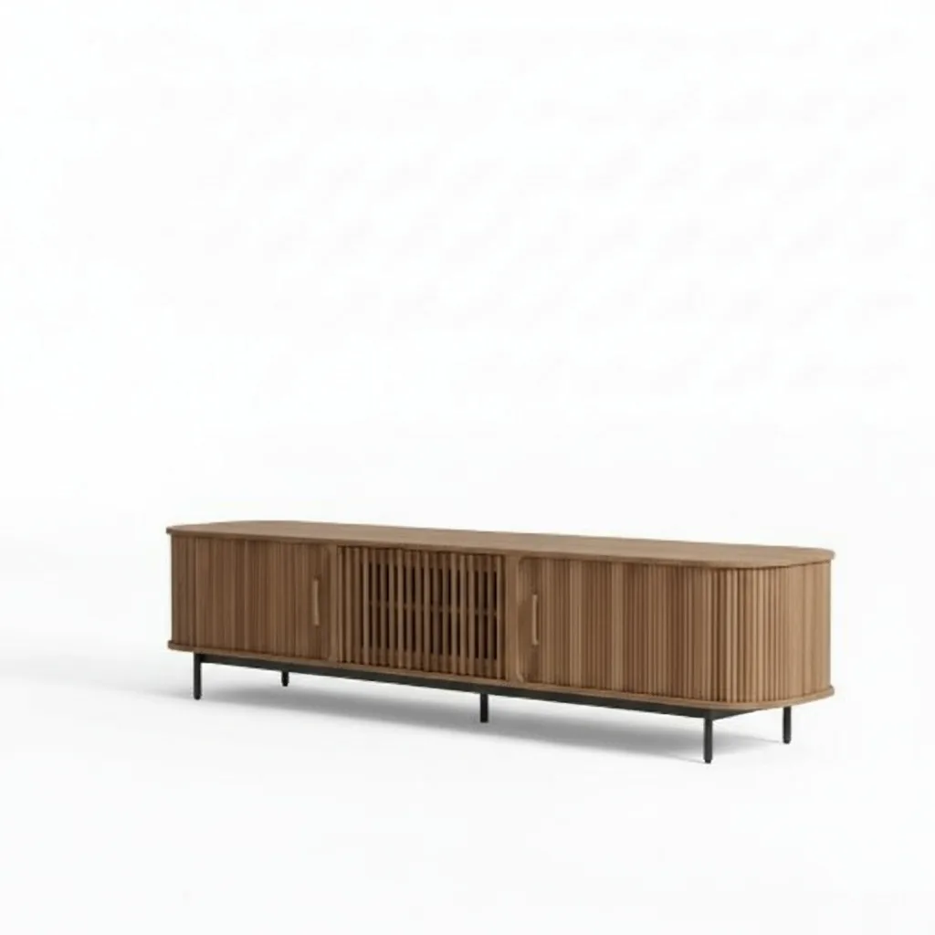 أڤالون وحدة تلفزيون مودرن بتصميم عصري أنيق يضيف لمسة فاخرة إلى غرفة المعيشة. تتميز بالخطوط الطولية التي تمنحها مظهراً متجدداً ومختلفاً، مع خامات خشبية طبيعية عالية الجودة تضمن المتانة وطول العمر. القاعدة المعدنية باللون الأسود تمنح الوحدة ثباتاً إضافياً وتكمل الأسلوب العصري. تحتوي على مساحات تخزين واسعة للأجهزة الإلكترونية، الكتب، والإكسسوارات، مما يجعلها قطعة عملية تجمع بين الوظيفة والجمال. هذه الوحدة مثالية للمنازل الحديثة التي تبحث عن تصميم يجمع بين الأناقة والفائدة اليومية.