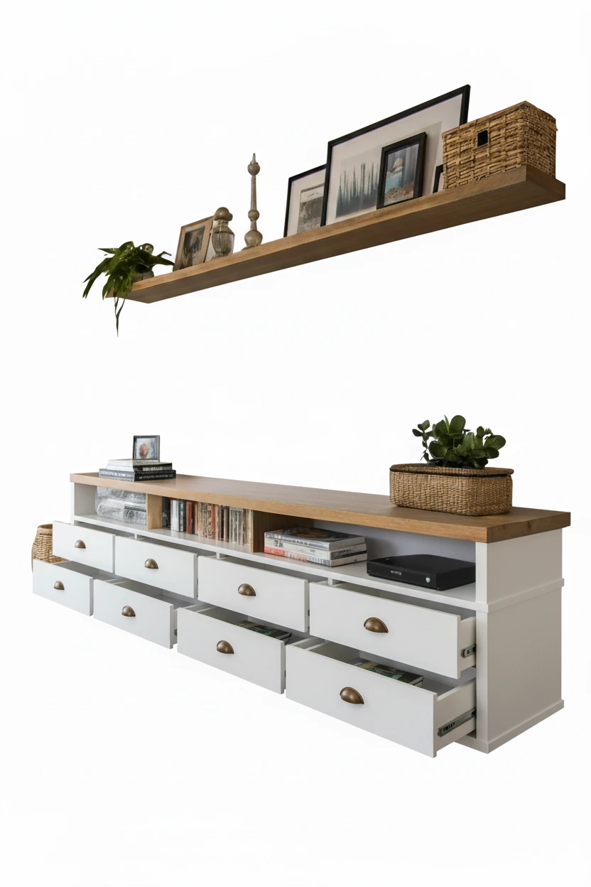 إيما وحدة تلفزيون مودرن بخزائن تخزين ورف جداري من LIVING