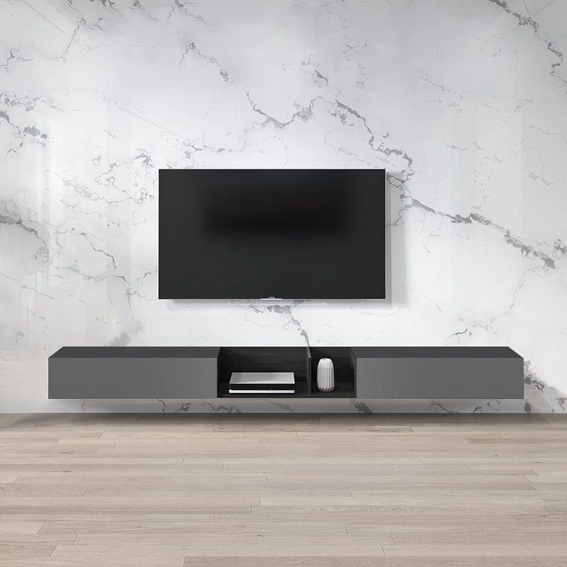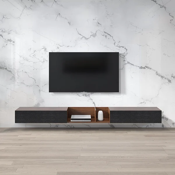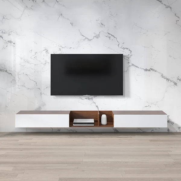 بارفيل حامل تلفزيون معلق على الحائط هو الخيار المثالي لإضفاء لمسة ديكورية عصرية على غرفة المعيشة الخاصة بك. يتميز بتصميم عصري وبسيط يضفي على المكان شعورًا بالانتعاش والأناقة، بالإضافة إلى توفير مساحة تخزين كبيرة. يمتاز هذا الحامل بوجود ضلفتين قلاب على الجانبين لتساعدك في تنظيم مقتنياتك وتجنب الفوضى، مما يجعله خيارًا عمليًا وجماليًا.