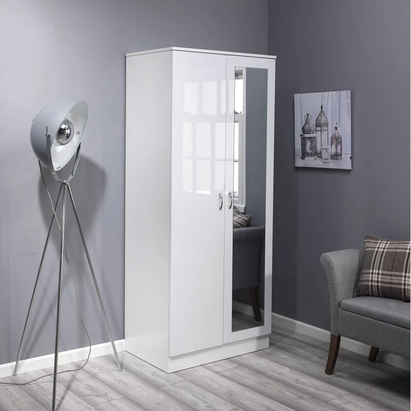 هل الخزانة تحتوي على مرآة؟ نعم، تحتوي الخزانة على مرآة كاملة الطول، مما يزيد من إشراقتها ويعكس الضوء لجعل الغرفة تبدو أكبر.