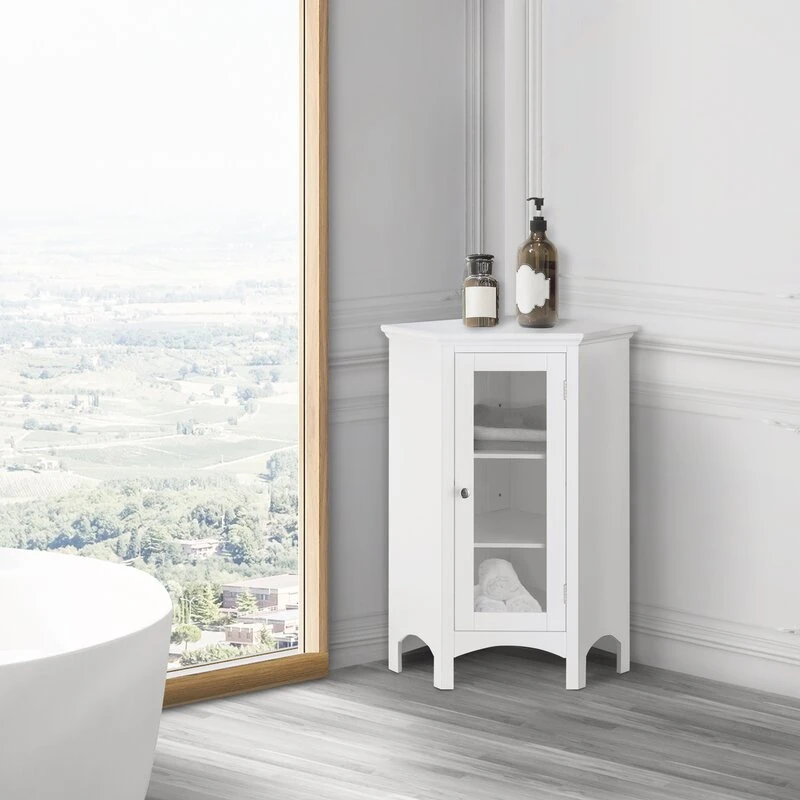 - تصميم أنيق وعصري: تتميز الخزانة الزاوية بتصميم أنيق يتناسب مع أي مساحة في منزلك، مع باب زجاجي و مقابض من الكروم لإضافة لمسة من الفخامة.