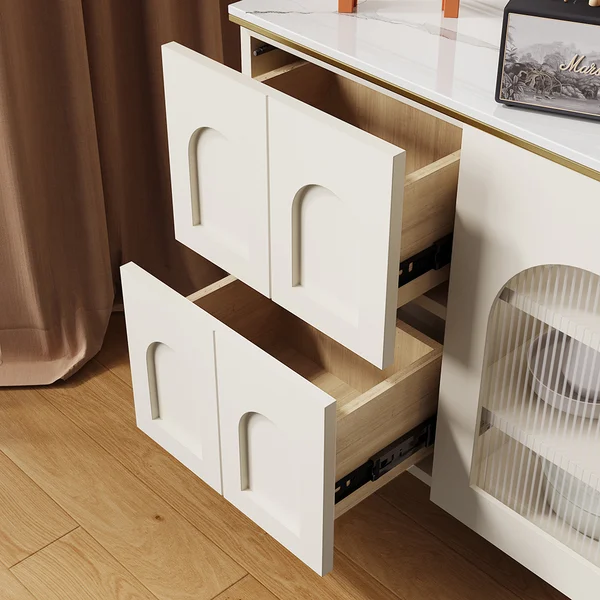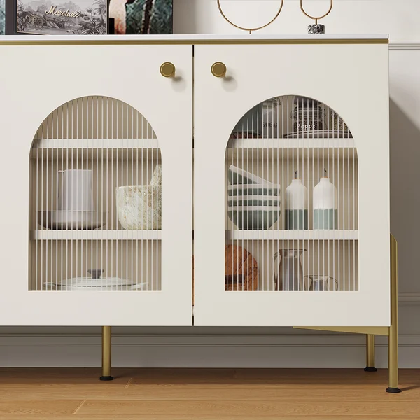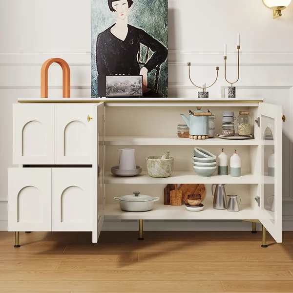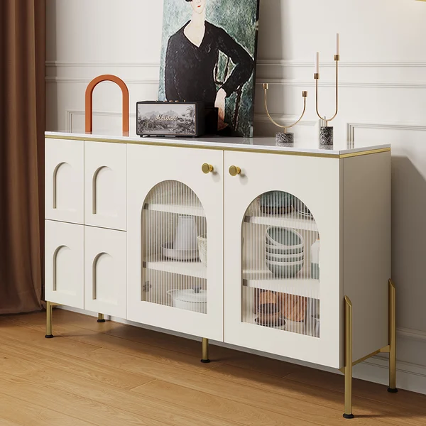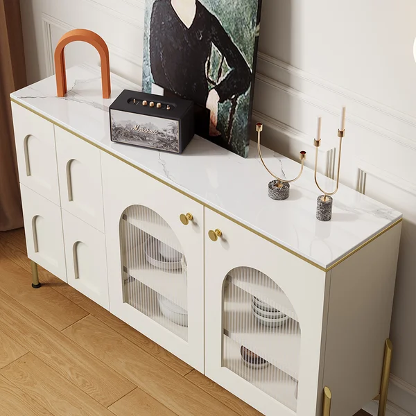تخلق هذه الخزانة الجانبية الحديثة شعورًا جديدًا بالنظام لأي منزل. تتميز بسطح طاولة أملس بملمس فني، وتوفر منصة مثالية للصور المؤطرة واللمسات الإبداعية والمزيد. توفر هذه الخزانة مساحة تخزين كبيرة للخوادم وأدوات المائدة والأواني الفخارية.