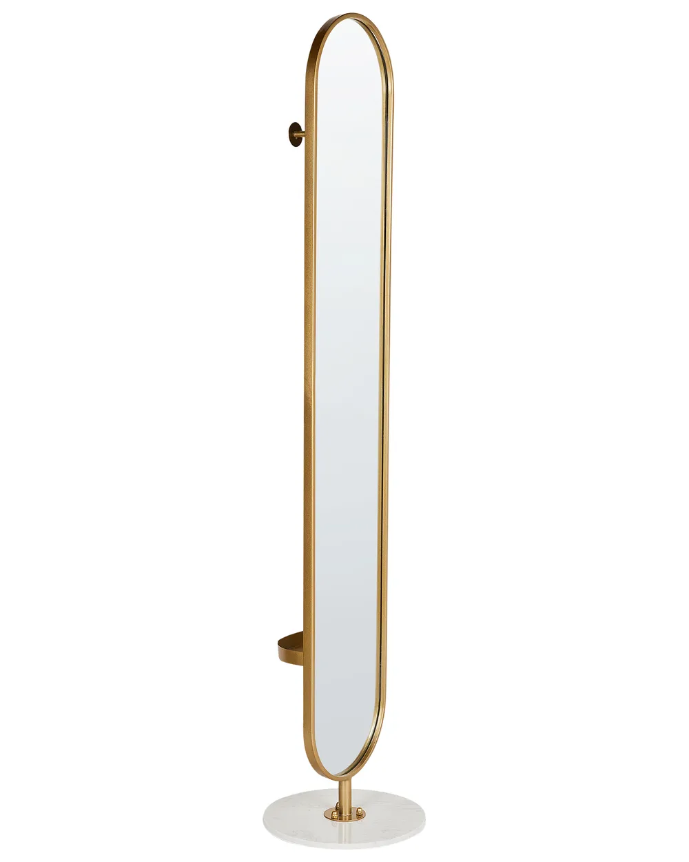 تأتي المرآة مزودة بـ رف خلفي مدمج يوفر مساحة تخزين عملية لتنظيم الإكسسوارات، العطور والقطع الصغيرة، كما يمكن استخدامه لتعليق بعض قطع الملابس الخفيفة، مما يجعلها حلًا مثاليًا لترتيب الإطلالات اليومية دون الحاجة لمساحات إضافية.