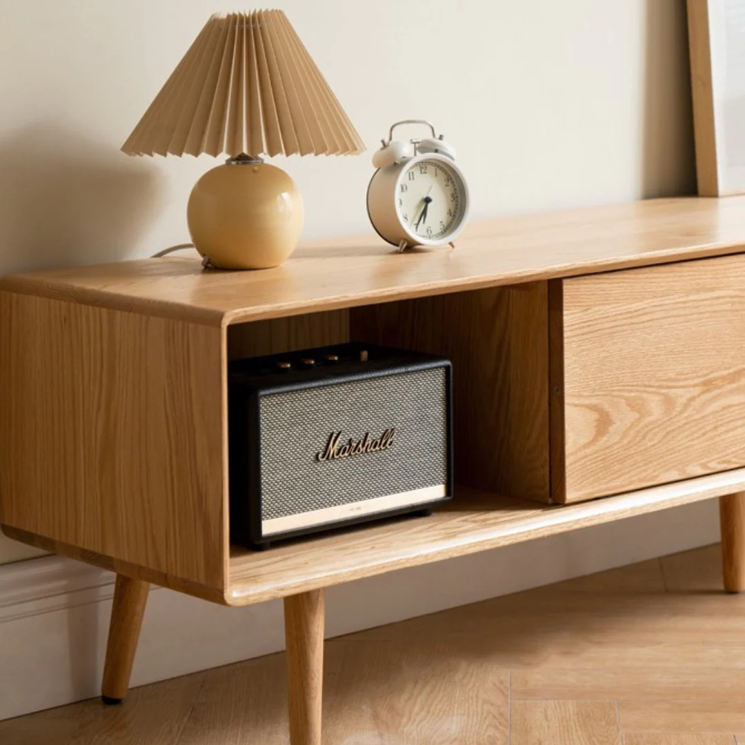 هل يمكن وضع أجهزة إلكترونية أخرى بجانب التلفزيون على هذه الطاولة؟ نعم، توفر ترابيزة تليفزيون خشب طبيعي ريكا مساحة كافية لاستيعاب أجهزة التلفزيون بالإضافة إلى أجهزة الصوت أو الملحقات الأخرى.