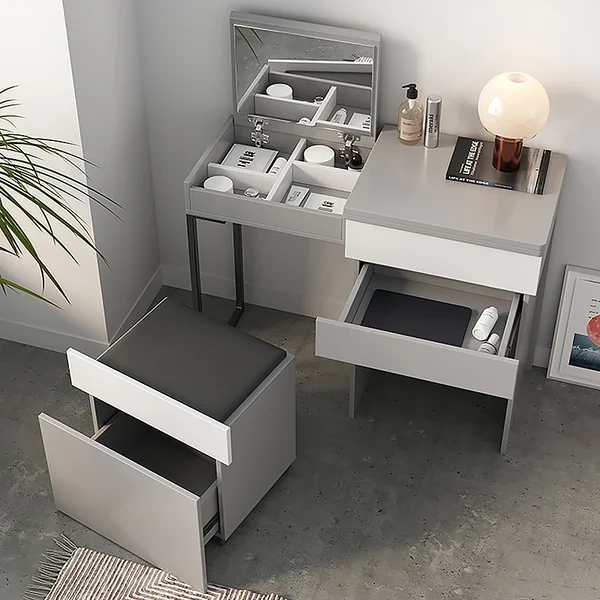 إذا كنتِ تبحثين عن قطعة أثاث أنيقة وعملية في آنٍ واحد، فإن خزانة المكياج هذه ستكون خيارك المثالي.تتميز بتصميم ذكي موفر للمساحة يمكن استخدامه كـ تسريحة مكياج فاخرة في الصباح، وطاولة جانبية أنيقة في المساء. مدمجة في الحجم، لكنها كبيرة من حيث الوظائف، ومثالية لغرف النوم الصغيرة أو المساحات التي تتطلب حلول تخزين ذكية.