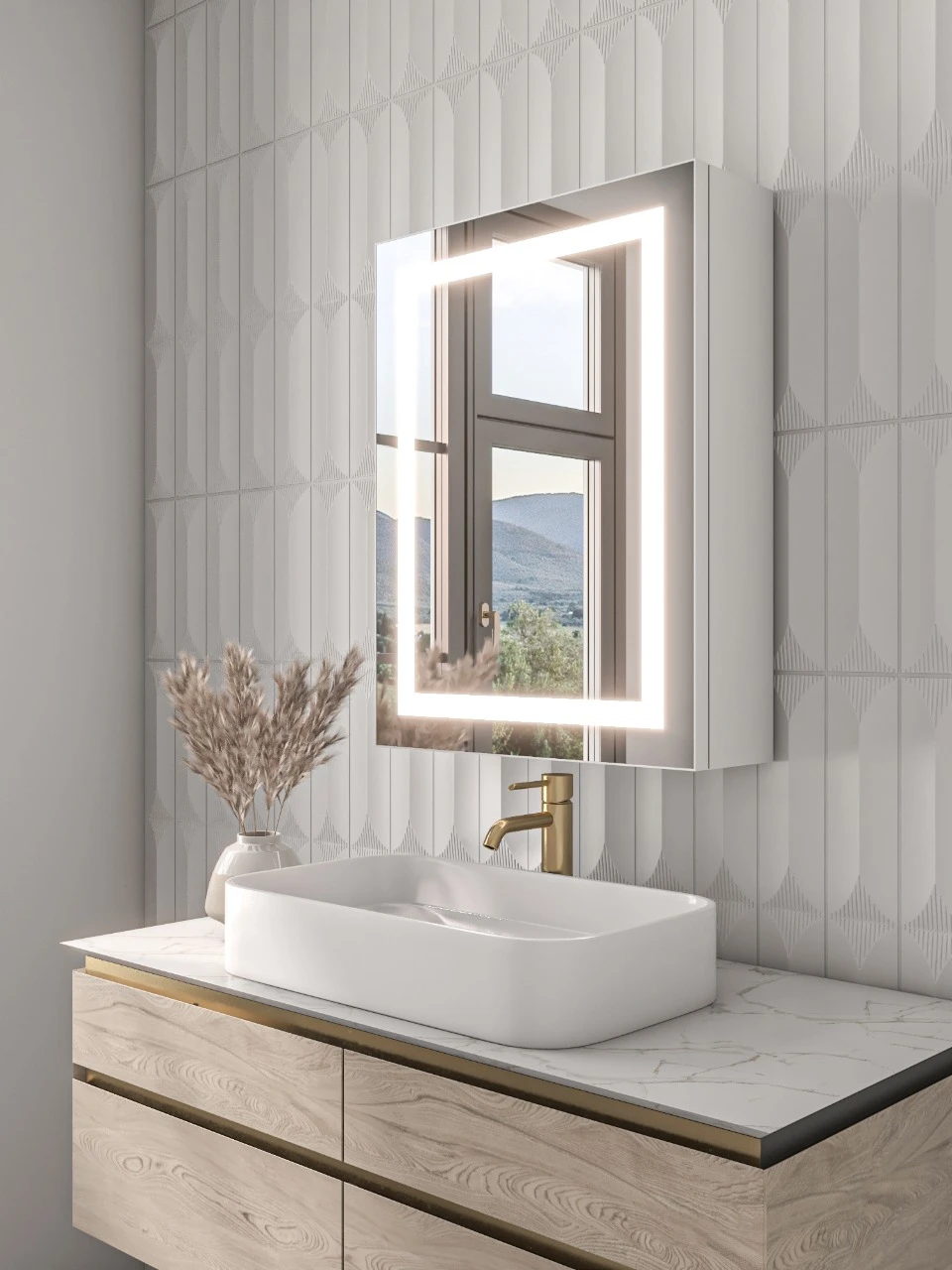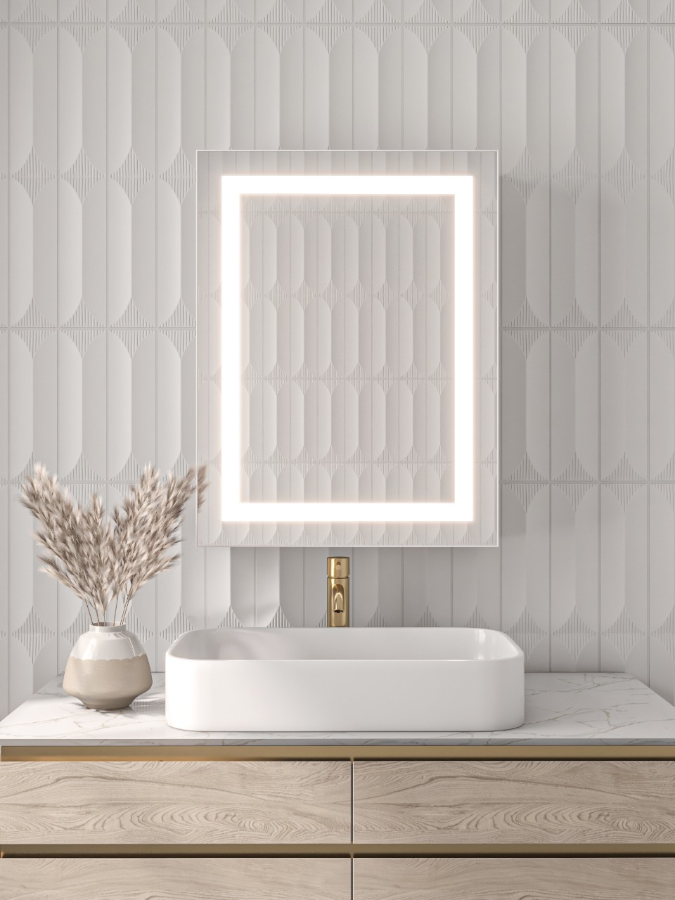 - إطار من إضاءة ليد لتعزيز الإضاءة والرؤية توفر إضاءة ليد المدمجة في إطار المرآة إضاءة واضحة تساعد على تحسين الرؤية في الحمام، بالإضافة إلى إضافة لمسة معاصرة وجمالية لديكور المكان.