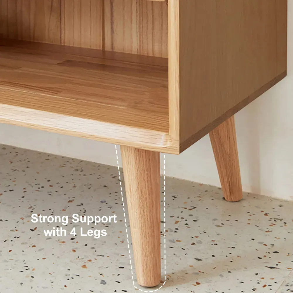 أضف لمنزلك تويفلي جزامة مودرن من الخشب الطبيعي والراتان واستفيد من التصميم المميز الذي يجمع بين الاستخدام العملي من حيث توفير ٤ رفوف للتخزين والشكل العصري الذي يعزز ديكور المنزل الحديث.