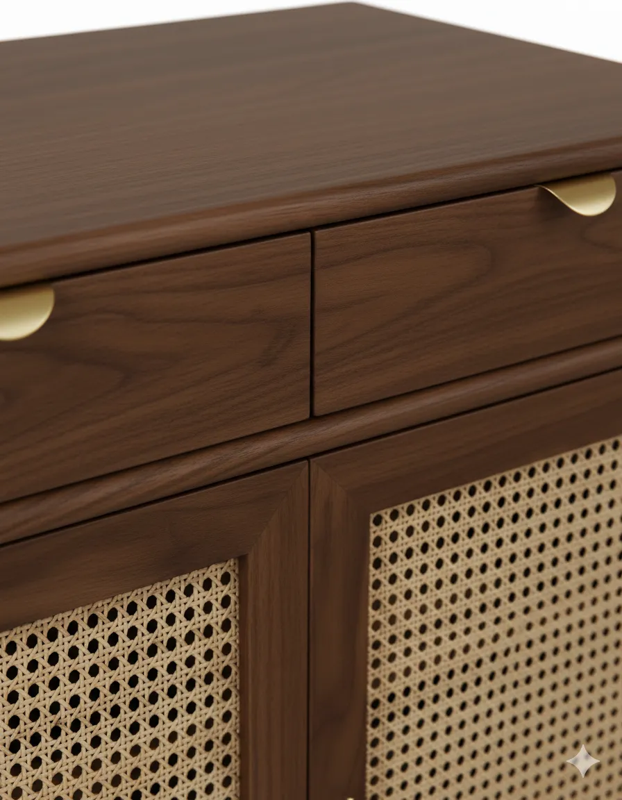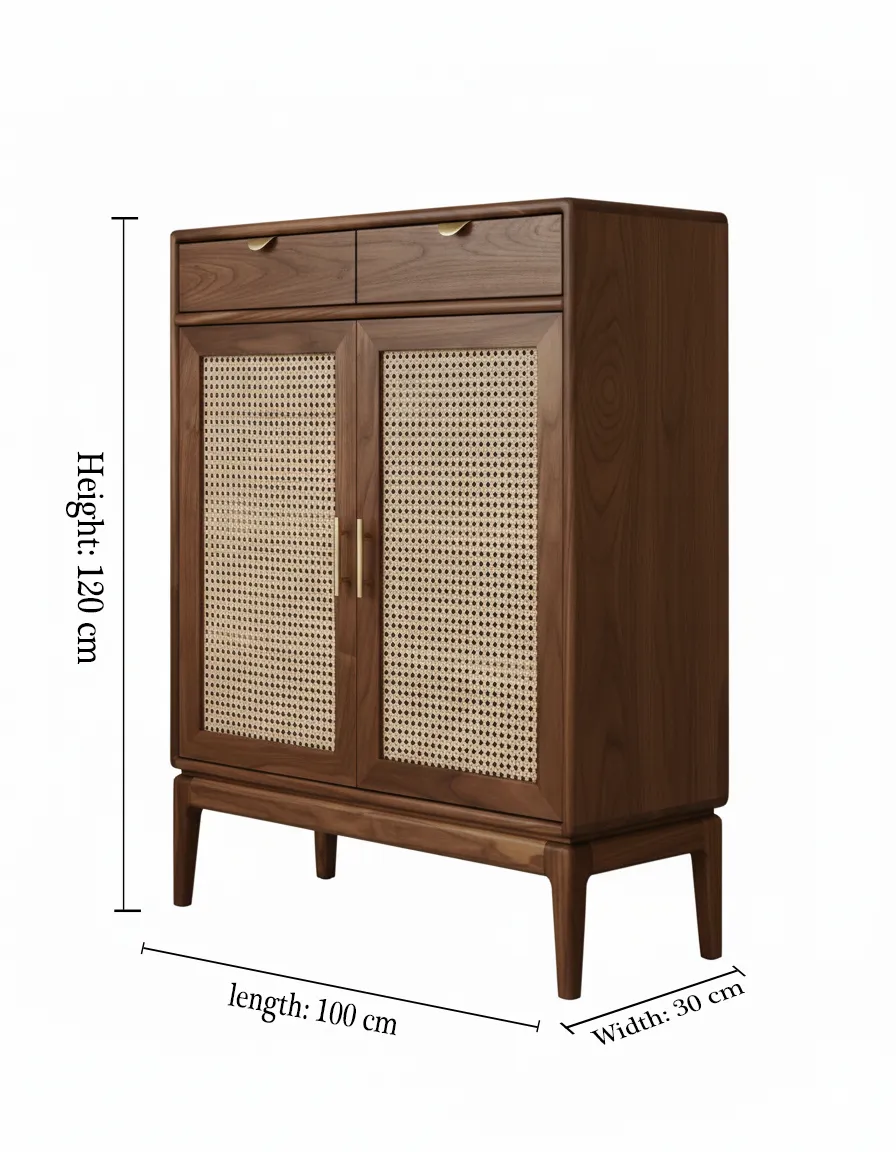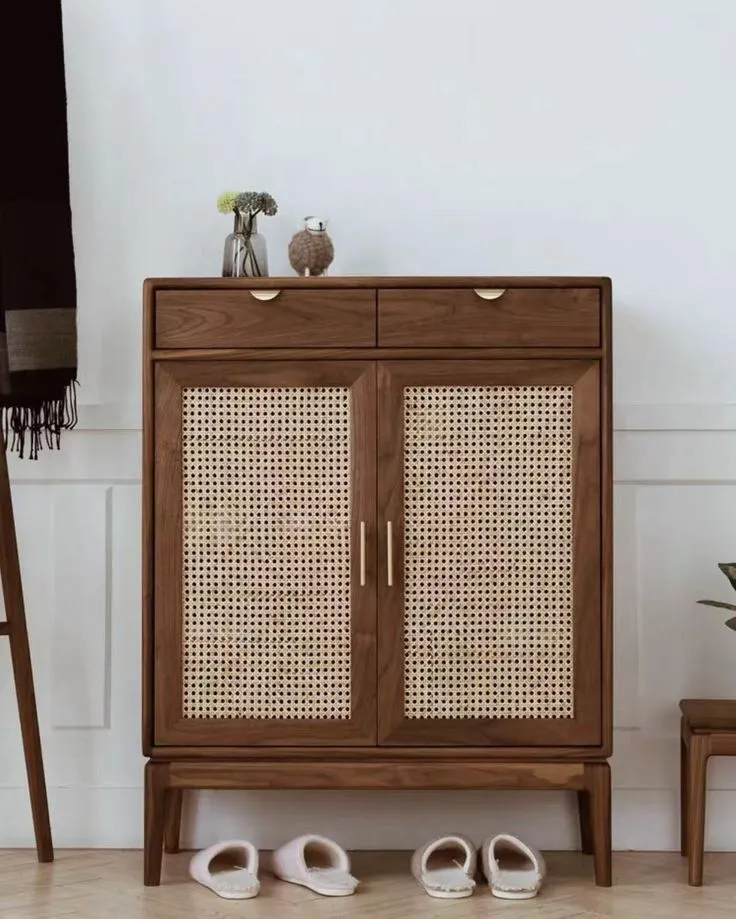 الجزامة مزودة بـ درجين علويين للتخزين العملي لأغراضك اليومية الصغيرة، بالإضافة إلى بابين من الراتان الطبيعي يتيحان تهوية مثالية للأحذية ويمنعان الروائح.