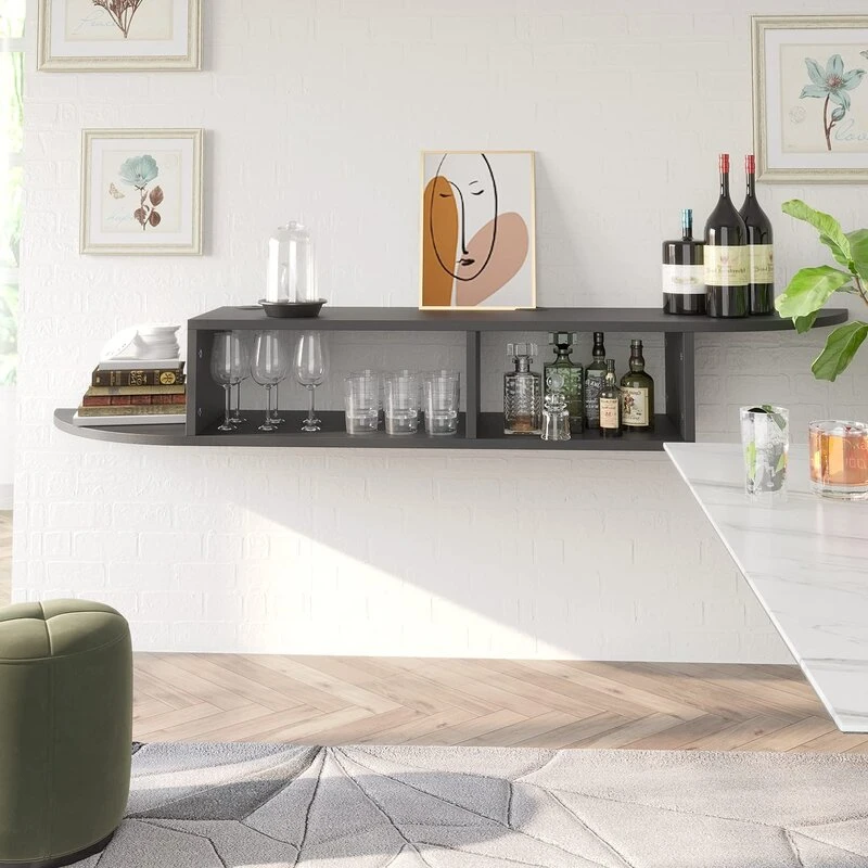 - رف كبير مثبت على الحائط: يتميز الحامل بتصميم معلق، مما يوفر لك مساحة واسعة تحت الحامل ويجعل عملية التنظيف أسهل بكثير.