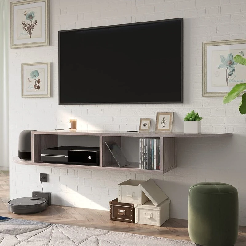 - مساحات تخزين مفتوحة: يوفر الحامل منافذ طاقة ومساحات لتخزين الأجهزة الإلكترونية مثل مكونات الصوت والفيديو، أجهزة إكس بوكس، صناديق الكابل، ومشغلات الأقراص المضغوطة.