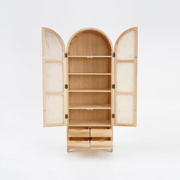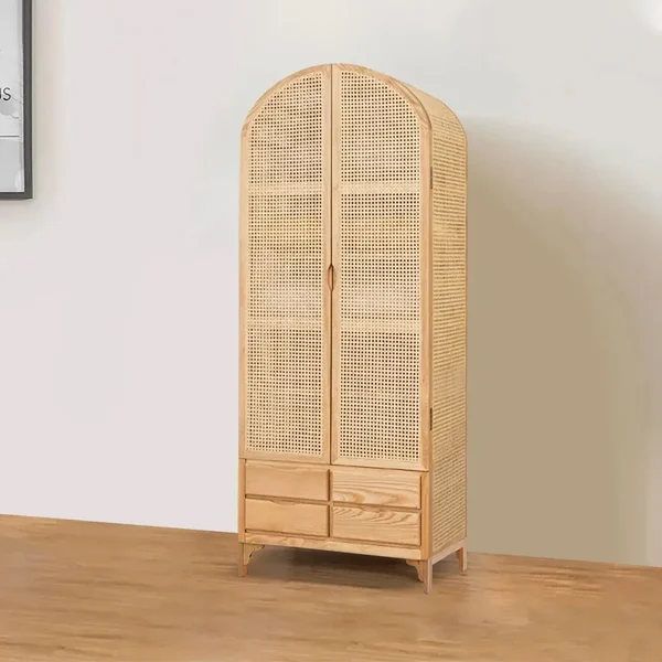 - خامات عالية الجودة: يتم تصنيع هذا الدولاب باستخدام الراتان والخشب الطبيعي، مما يضمن لك منتجًا قويًا ودائمًا، مع الحفاظ على تصميمه الجميل.