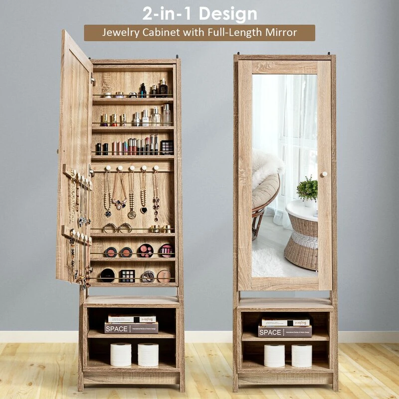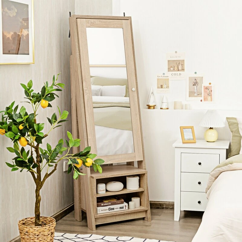 دولاب مجوهرات كويمورا مع مرآة سيضيف لمسة رائعة لأي غرفة! مصنوعة من الخشب الطبيعي عالي الجودة، توفر هذه الخزانة تصميمًا مرنًا وقويًا يدوم لفترة طويلة.