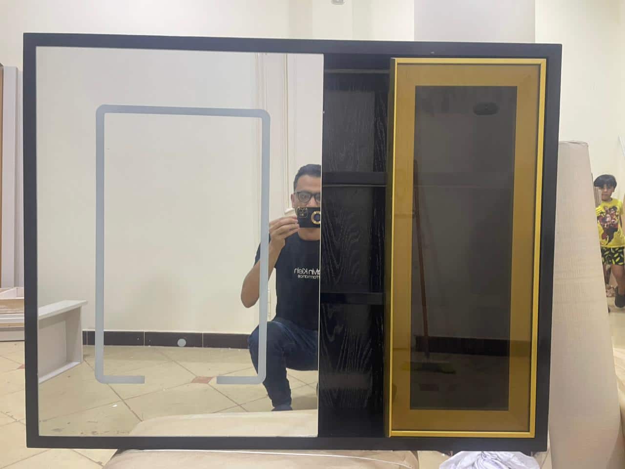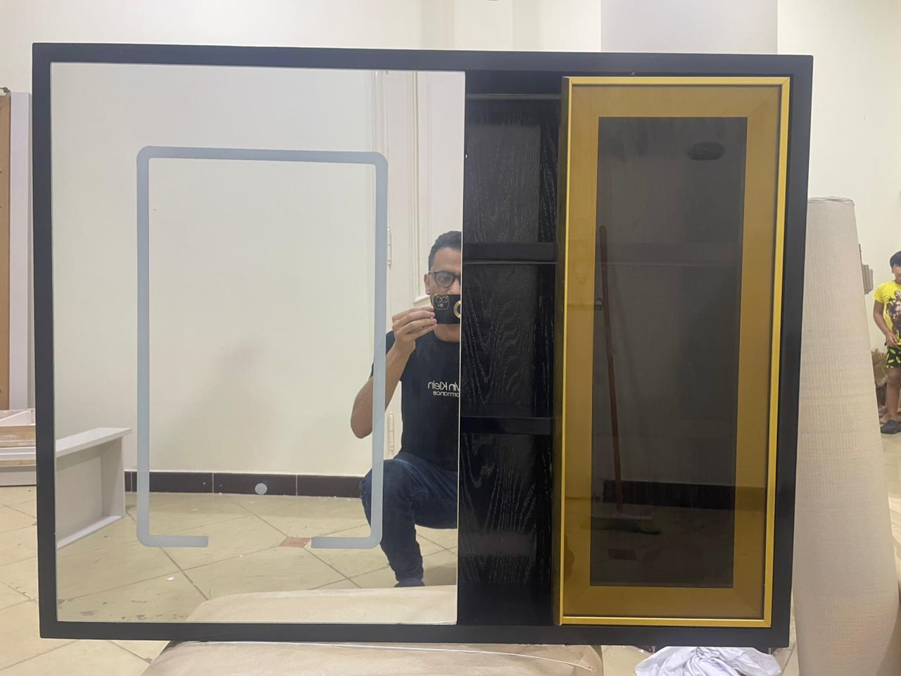6. إضاءة ليد لتعزيز الرؤية والجمال يتميز إطار مرآة ديكسي بإضاءة ليد مدمجة، مما يضفي جمالًا إضافيًا على التصميم ويعزز من الرؤية بشكل واضح. كما توجد إضاءة داخل الخزانة لتوفير إضاءة مثالية عند استخدام التخزين.