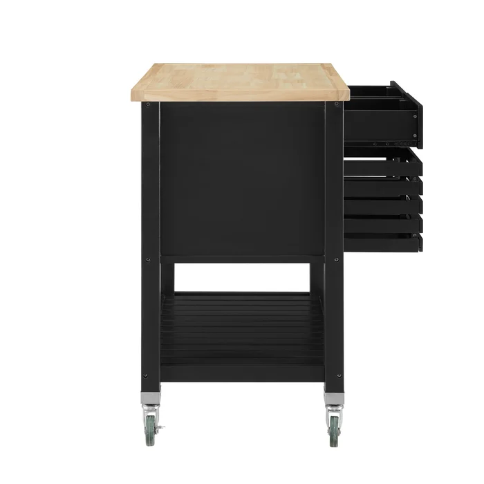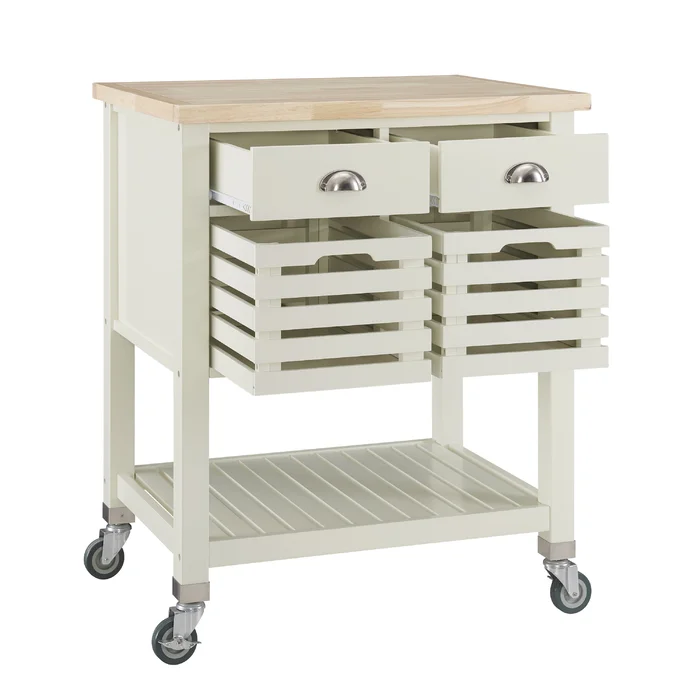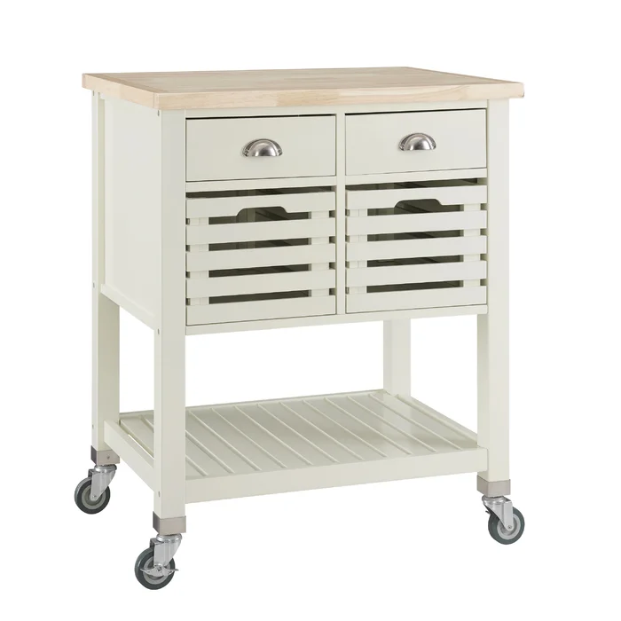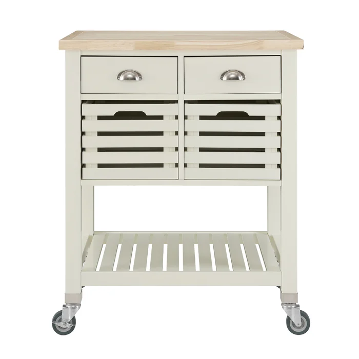 تلك العربة هي كل ما تحتاجه لمطبخ خالي من الفوضى، إذ توفر لك مساحة تخزين عبارة عن درجين وضلفة ورف سفلي، إضافةً إلى عجلات توفر سهولة الحركة . ضاعف مساحة تحضير الطعام بالاعتماد على تلك العربة.