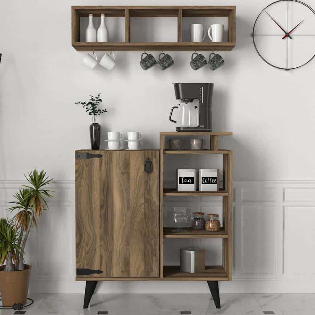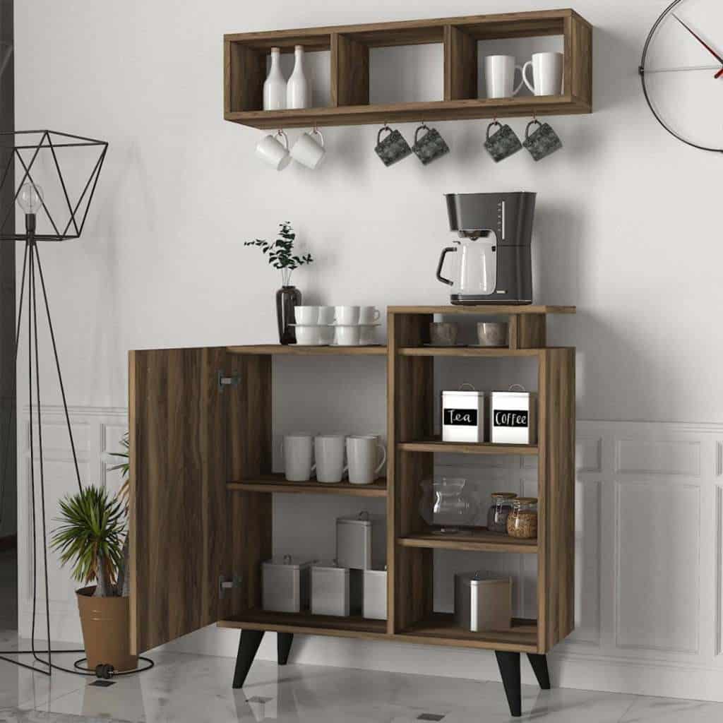 - رفوف تخزين عملية:تتيح لك ترتيب أكواب القهوة، الملاعق، برطمانات القهوة، الشاي، والسكر في مكان منظم وسهل الوصول.