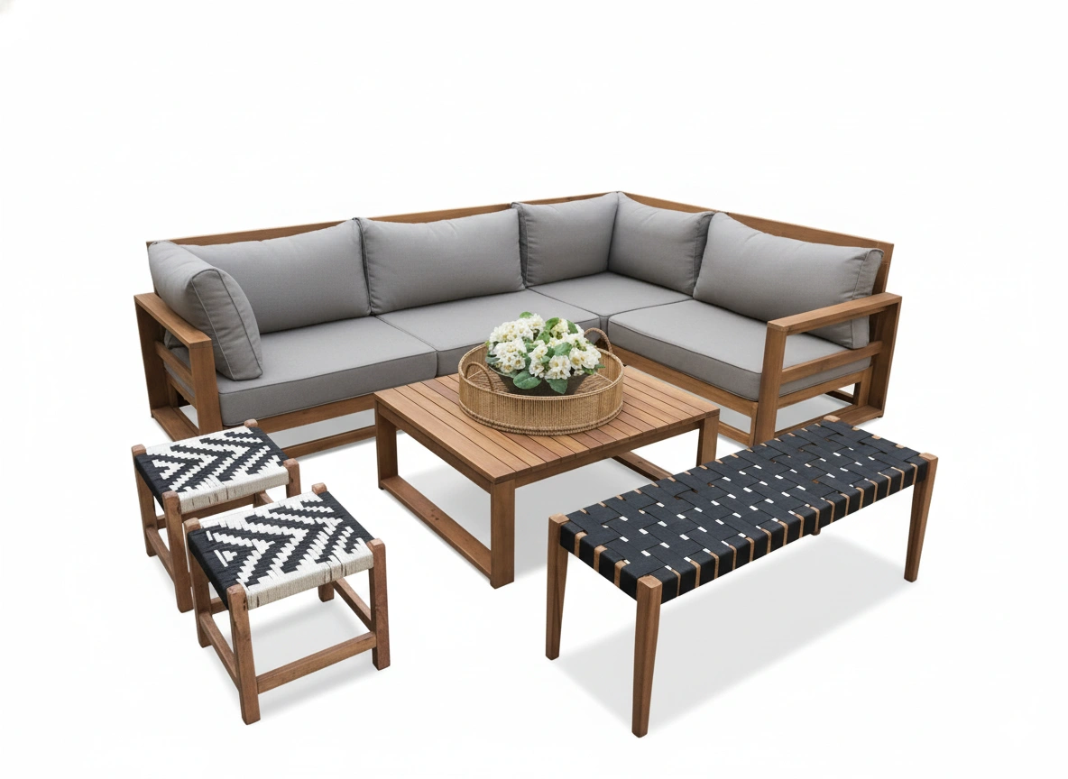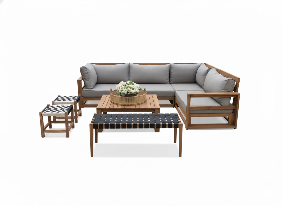 تم تصميمه بعناية ليجمع بين الخشب الطبيعي الفاخر والألوان الهادئة التي تضفي لمسة دفء وأناقة على حديقتك أو تراسك.