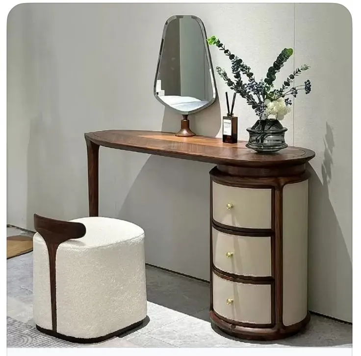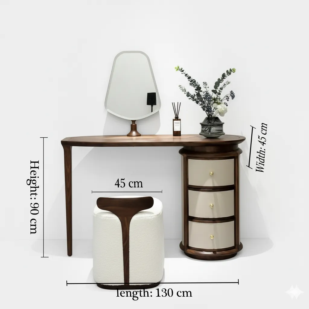ريميا تسريحة بتصميم خشبي أنيق ومظهر راقٍ صُممت خصيصًا لعشاق التفاصيل الراقية. تجمع بين الخشب الطبيعي بتشطيبات عالية الجودة والتصميم العصري المنحني الذي يمنحها لمسة فخامة.