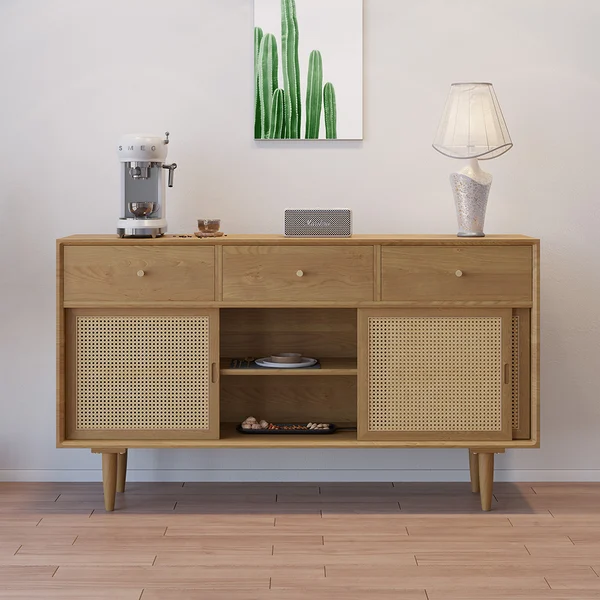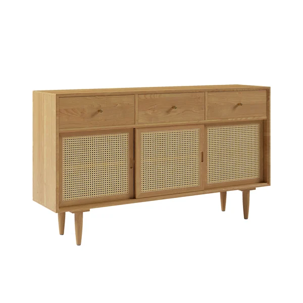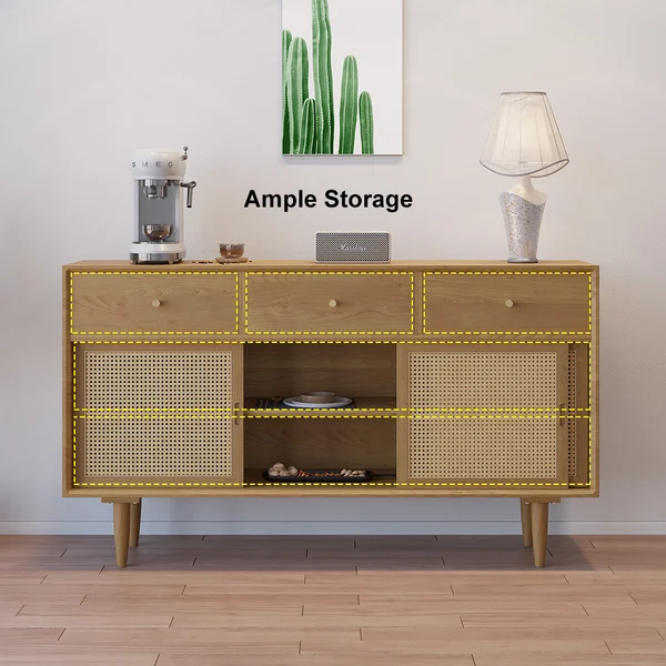أضف لمسة رقيه دون عناء وفائدة بسيطة إلى أي مساحة ترفيهية مع هذه البوفيه الأساسي، القطعة المثالية لجمالك المنسق جيدًا. ثلاثة أبواب قابلة للسحب تفتح لتكشف عن مساحة تخزين واسعة لبياضات وأطباق الطعام بينما يمكن استخدام ثلاثة أدراج للاحتفاظ بأغراضك الصغيرة والضرورية. مدعوم بأرجل مدببة، فهو يضمن دعمًا ثابتًا وخيارًا طويل الأمد.