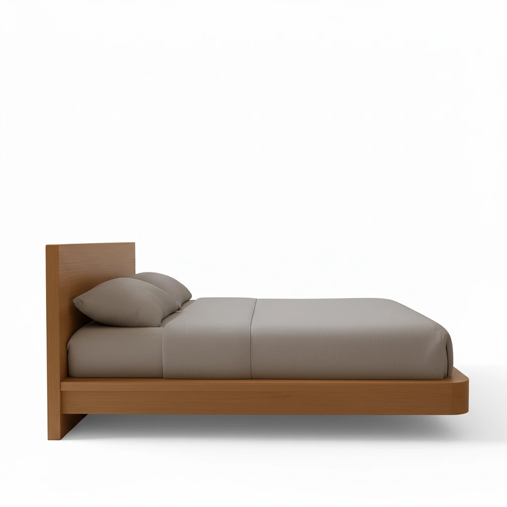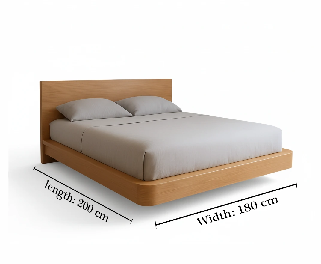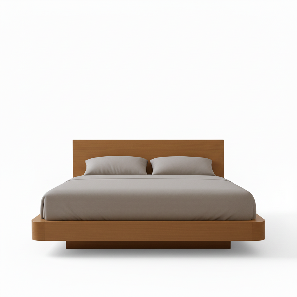مصنوع من خشب طبيعي متين بلون فاتح يضفي على غرفة النوم دفئًا وأناقة، مع خطوط تصميم ناعمة وحواف منحنية تمنح إحساسًا بالراحة والانسيابية.