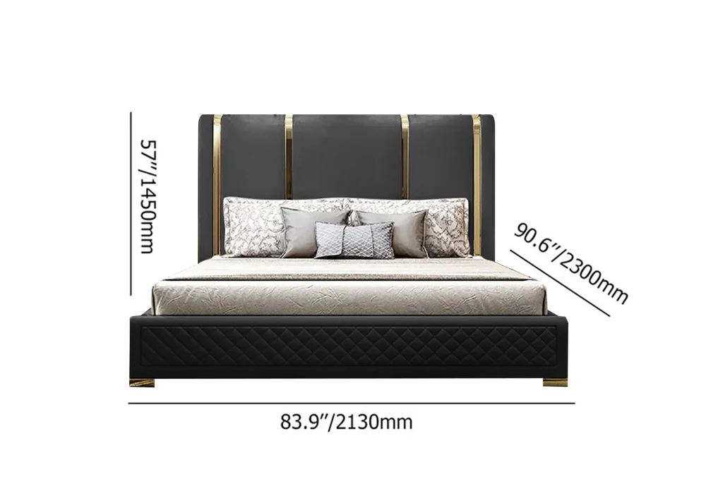 بفضل مزيج اللون الأسود مع التفاصيل الذهبية، فإن تصميم السرير يتماشى بسهولة مع الديكورات الكلاسيكية والعصرية على حد سواء.