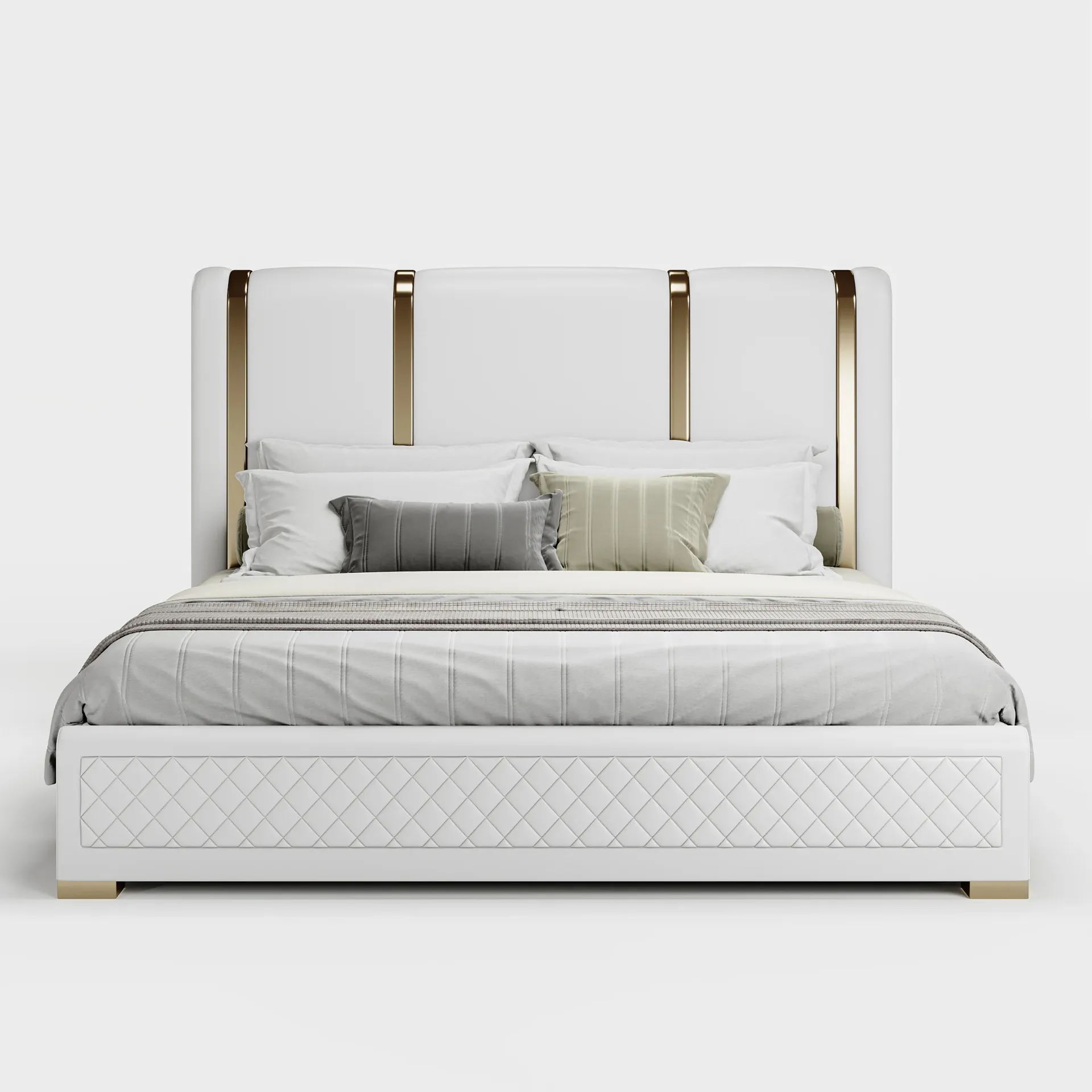 • لوح رأس مبطن فاخر: يمنحك دعمًا مريحًا أثناء القراءة أو الاسترخاء، ويضفي مظهرًا ملكيًا على السرير.