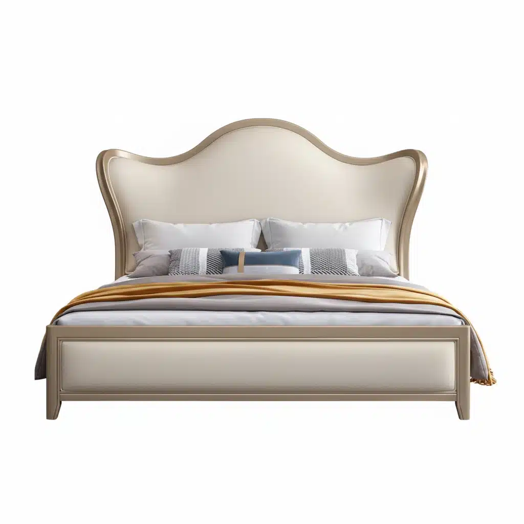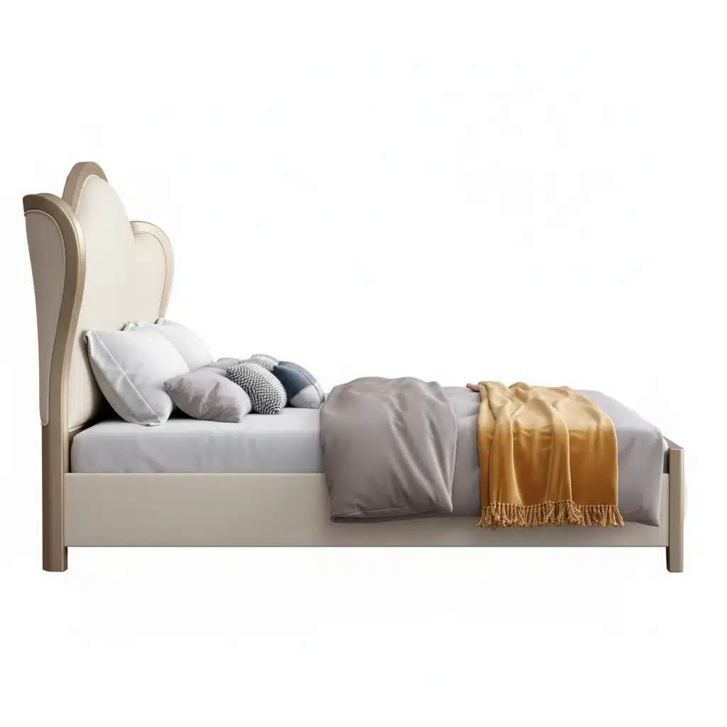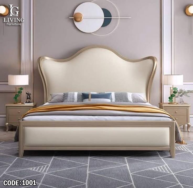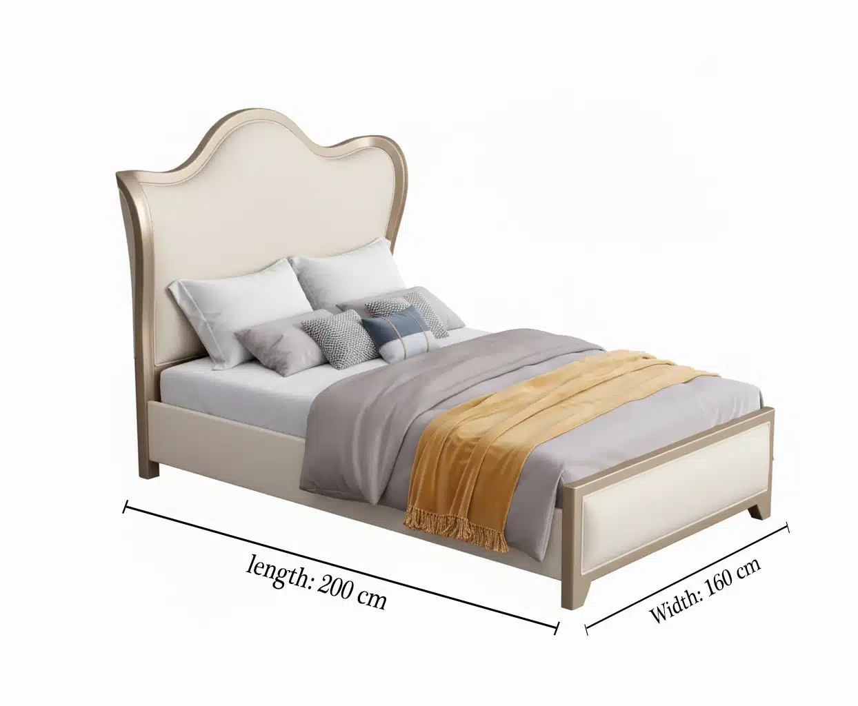 يتميز السرير بظهر عالي مبطن وناعم بلمسة فاخرة تضيف إحساسًا بالدفء والأناقة، بينما تمنحك الحواف المنحنية لمسة فنية تعكس الذوق الراقي.