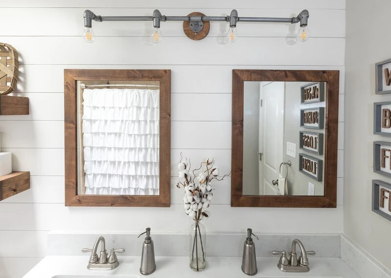 - إطار خشبي أنيق ومتين الإطار الخشبي لهذه المرآة مصنوع من الخشب الطبيعي المقاوم للرطوبة، مما يضمن لها استدامة عالية ويحافظ على شكلها الجميل لسنوات عديدة. يضيف الخشب الطبيعي لمسة ريفية وأنيقة لحمامك.