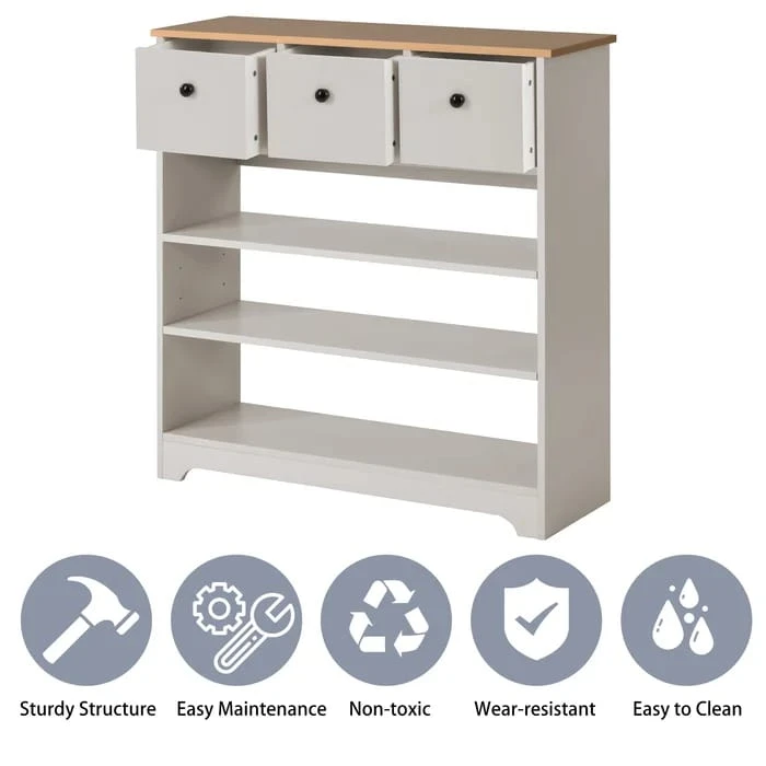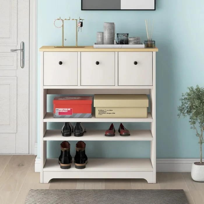 - يوفر رف الأحذية مساحة تخزين كبيرة من خلال 3 رفوف متتالية و3 أدراج علوية لزيادة مساحة التخزين.