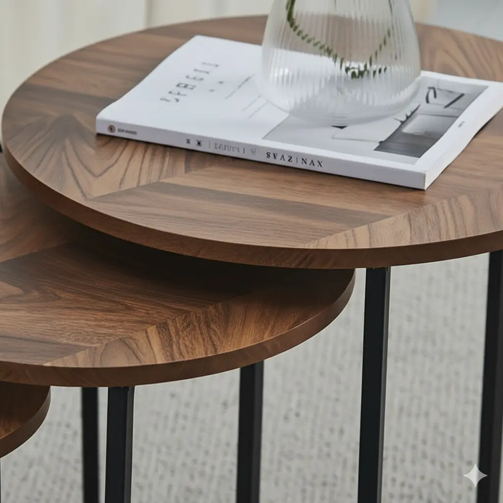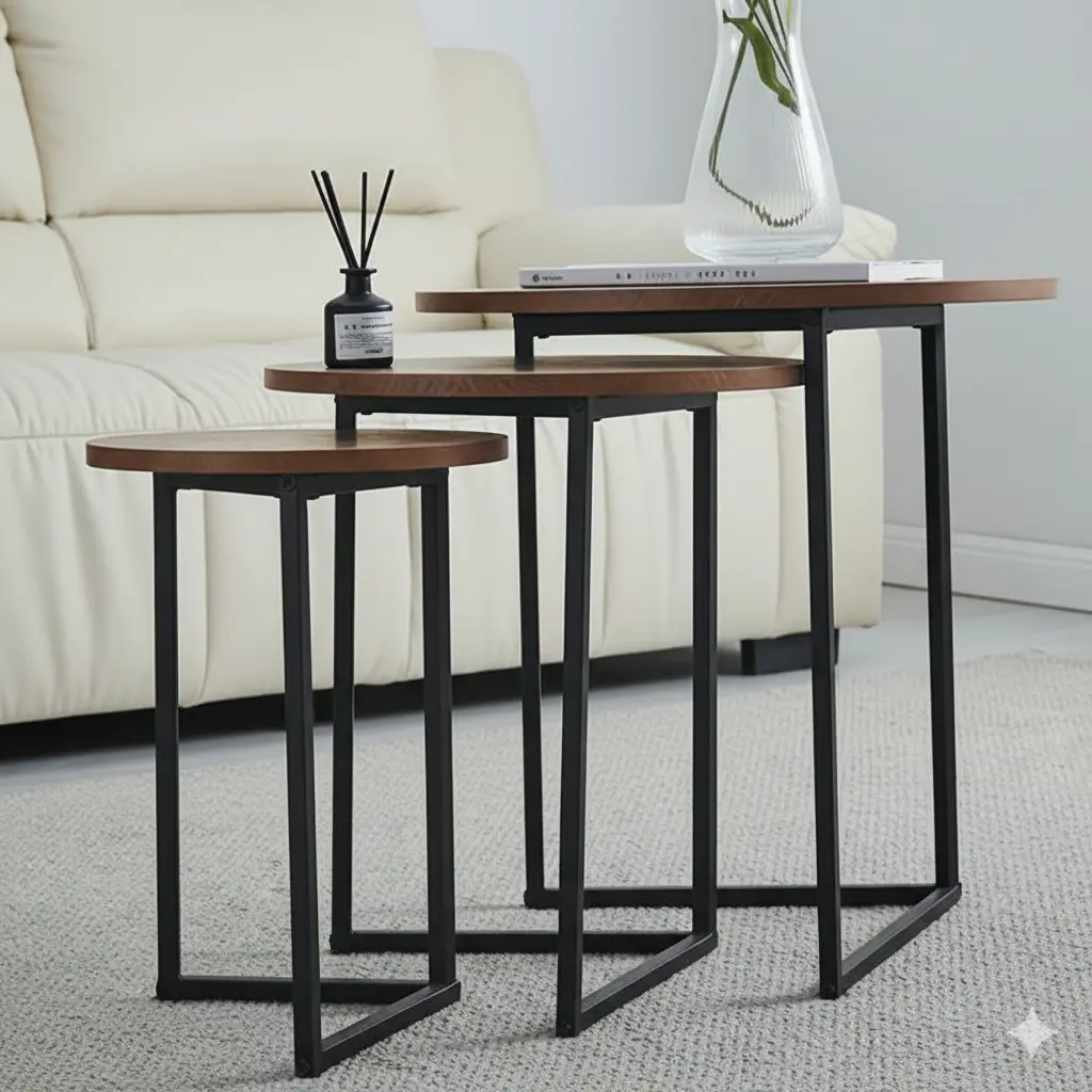 يمكن ترتيبها معًا أو بشكل منفصل حسب الحاجة، مما يجعلها مثالية لغرف المعيشة، الزوايا، أو كطاولات قهوة أنيقة.