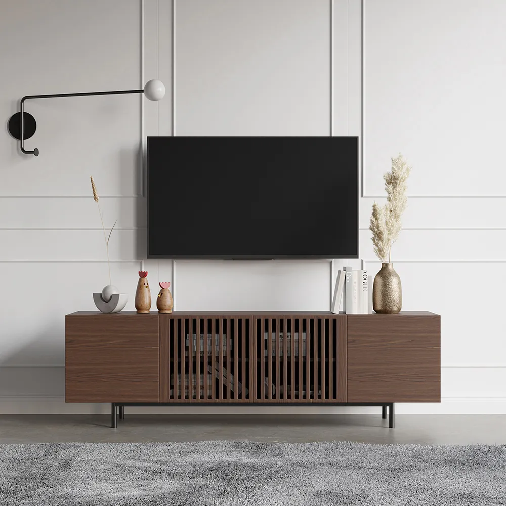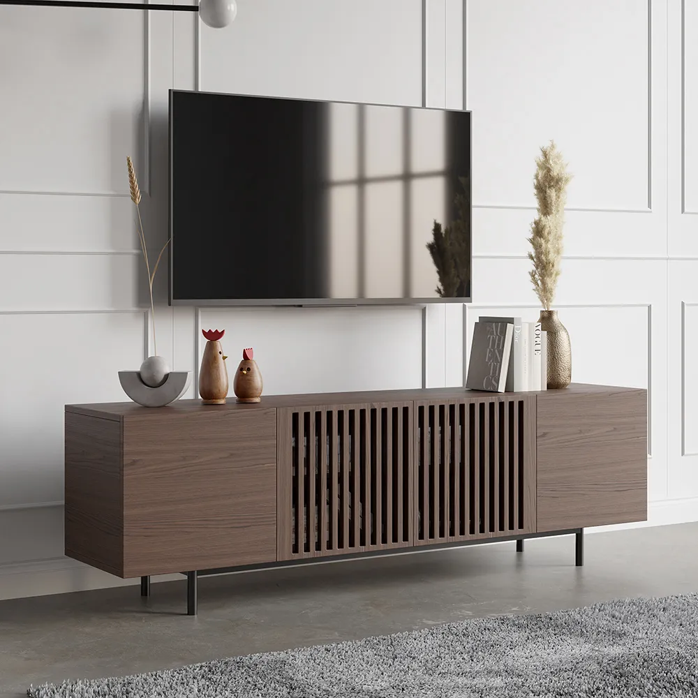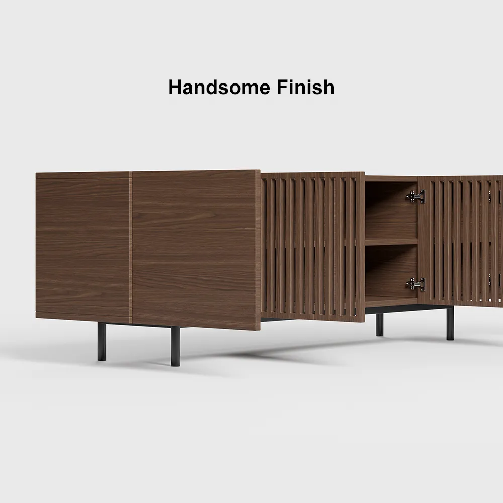 2. تصميم عصري: أبواب الضلف مزودة بشرائح خشبية رفيعة تعزز من الطابع الحديث، مما يجعل الوحدة جزءًا رائعًا من ديكور منزلك.